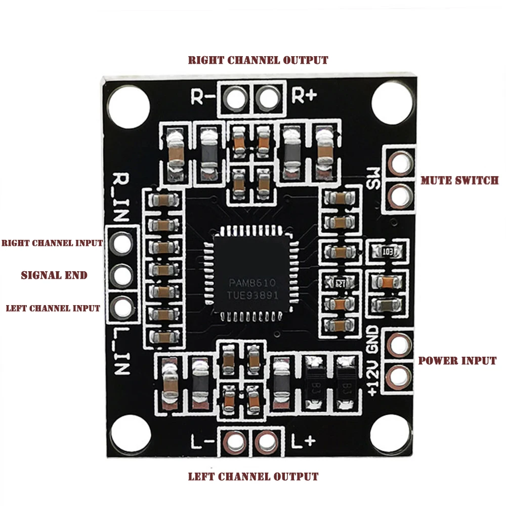 Хороший чип продукта и огромное количество любителей музыки поделятся, это наша последовательная философия! Усилитель мощности с высокой эффективностью, большой мощностью, в Чехол 12 в блок питания может выводить мощность 10 Вт + 10 Вт, чип без теплоотвода, но также с перегревом, защитой от перегрузки по току, можно сказать, что функции очень мощные.