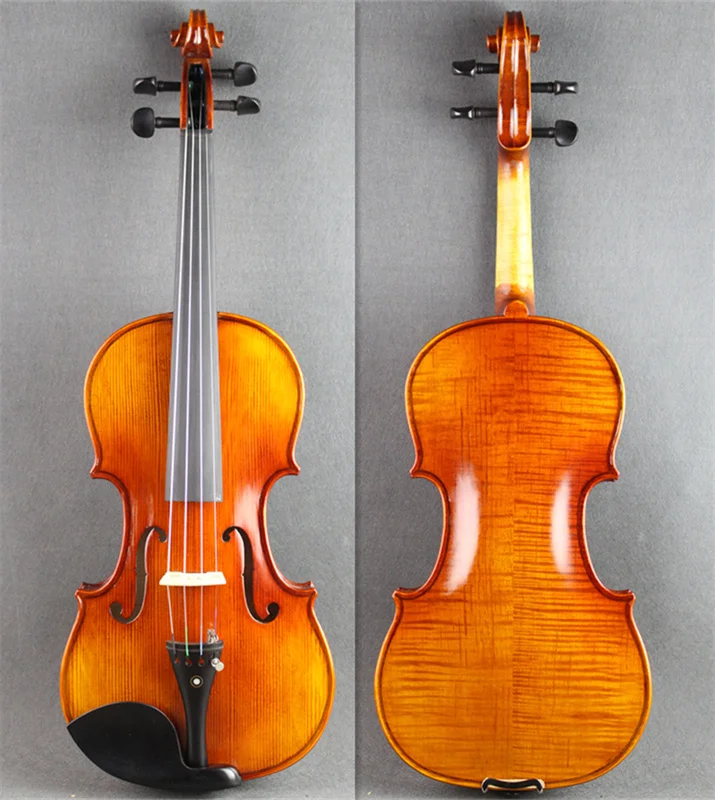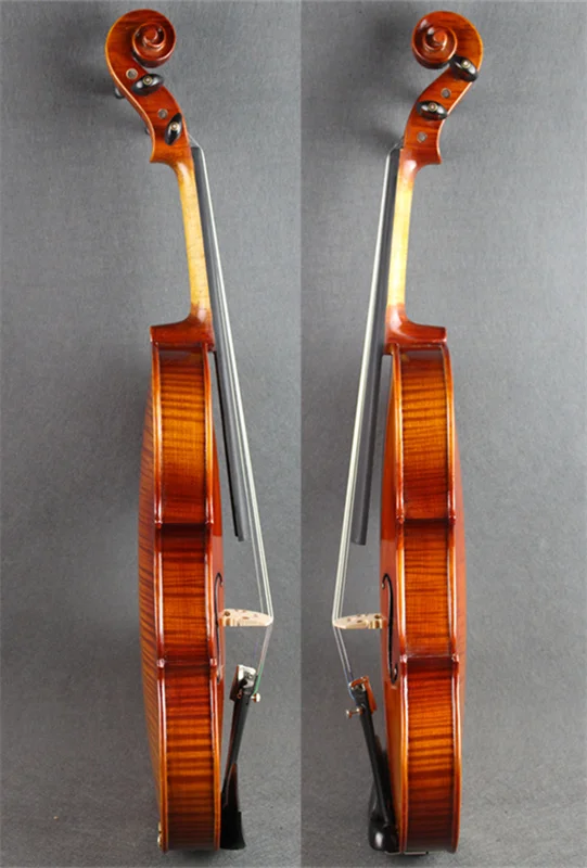 Скрипка сделана из натурального твердого елового топа и задняя Дека из огненного клена, не ламинированная или окрашенная.