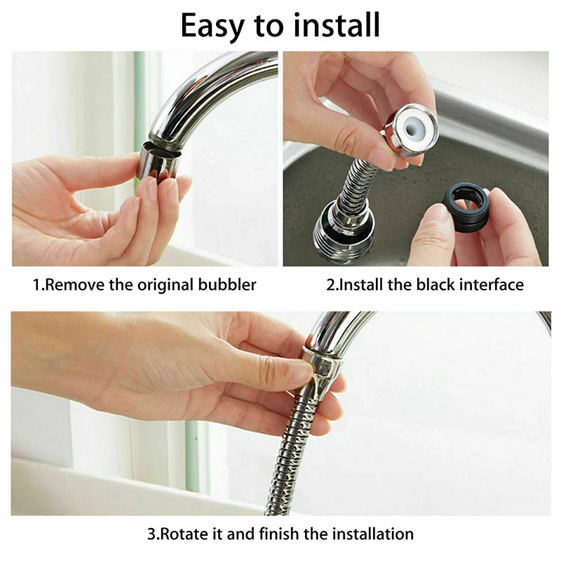 * Вращение на 360 градусов: распылитель смесителя оснащен шлангом, который может вращаться на 360 градусов, который хорошо адаптирован к различным видам деятельности раковины и может легко очистить слепой уголок кухонной раковины.