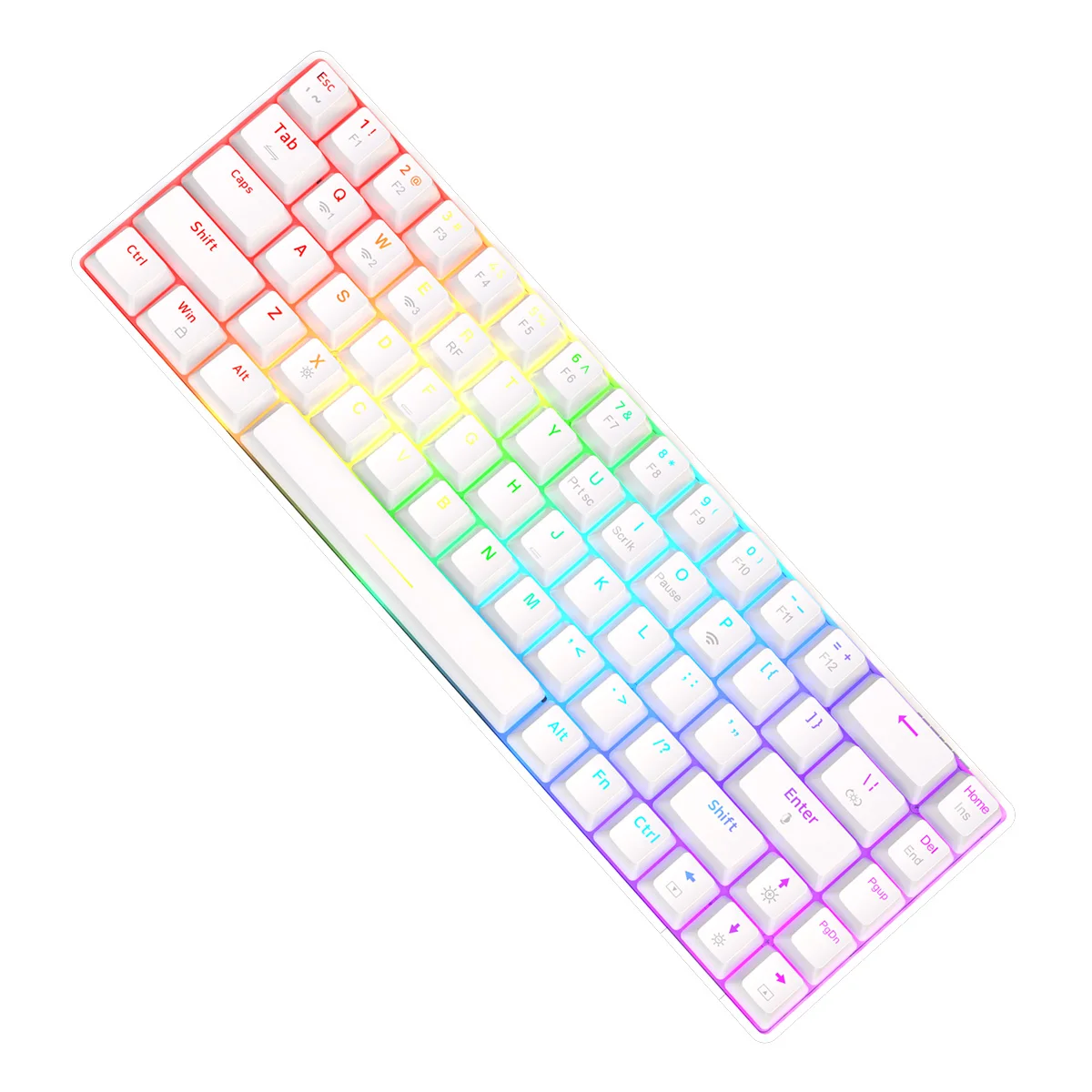 Ajazz K685T имеет RGB Освещение с 18 эффектами и 7 доступных одиночных цветов. Просто подключите клавиатуру с помощью usb-кабеля для доступа к эффектам. Наслаждайтесь более захватывающим и красочным набором текста и игровым опытом.