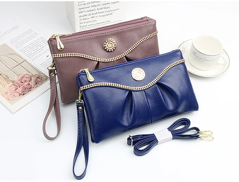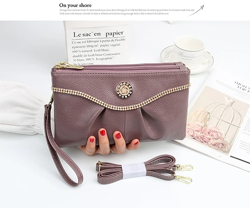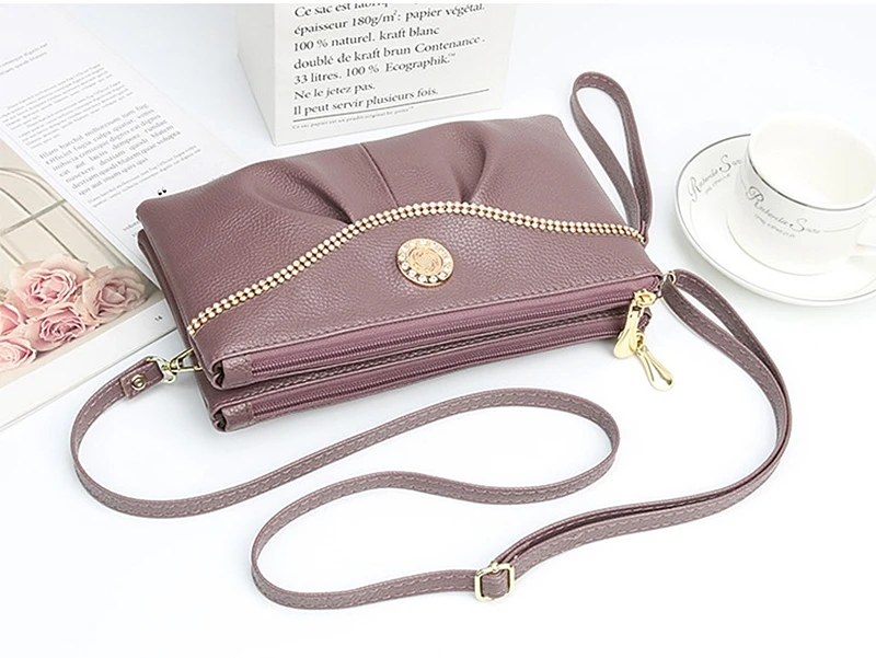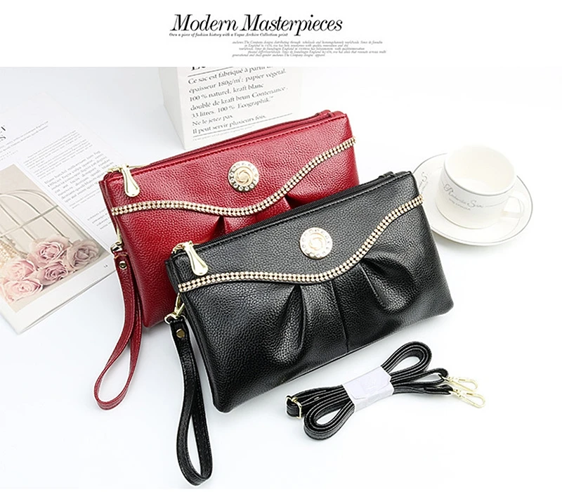 Женская сумка-Кроссбоди из искусственной кожи с зернистой двойной молнией и рюшами, удобная сумка на плечо с ремешком на запястье, Модные Бриллианты