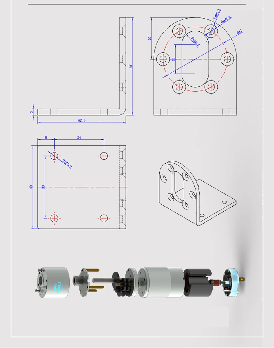 Мотор-редуктор постоянного тока * 1ИлиМотор-редуктор постоянного тока * 1 с кронштейном * 1