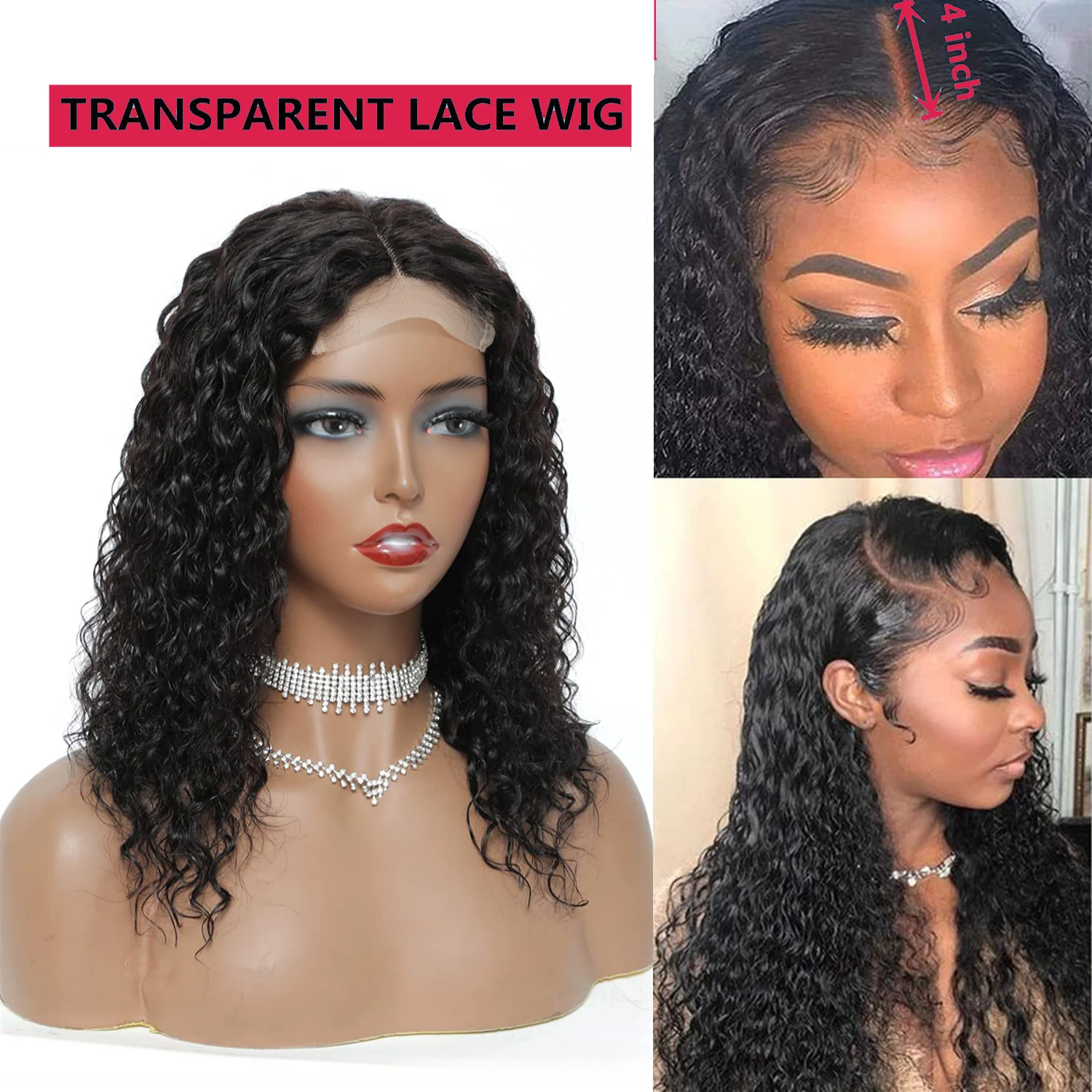 Прозрачный волнистый парик на шнурках, бразильские 100% Человеческие волосы Remy, парики на шнурках для женщин 4X4, парики на шнурках, кудрявые человеческие волосы