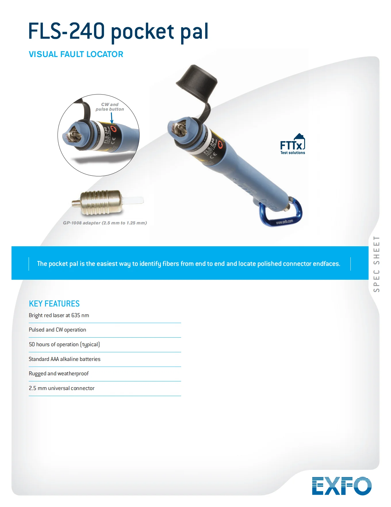 Оригинальный канада EXFO Визуальный дефектоскоп FLS-240 карманный размер волоконно-оптическое испытательное оборудование VFL ярко-красный лазер на 635nm