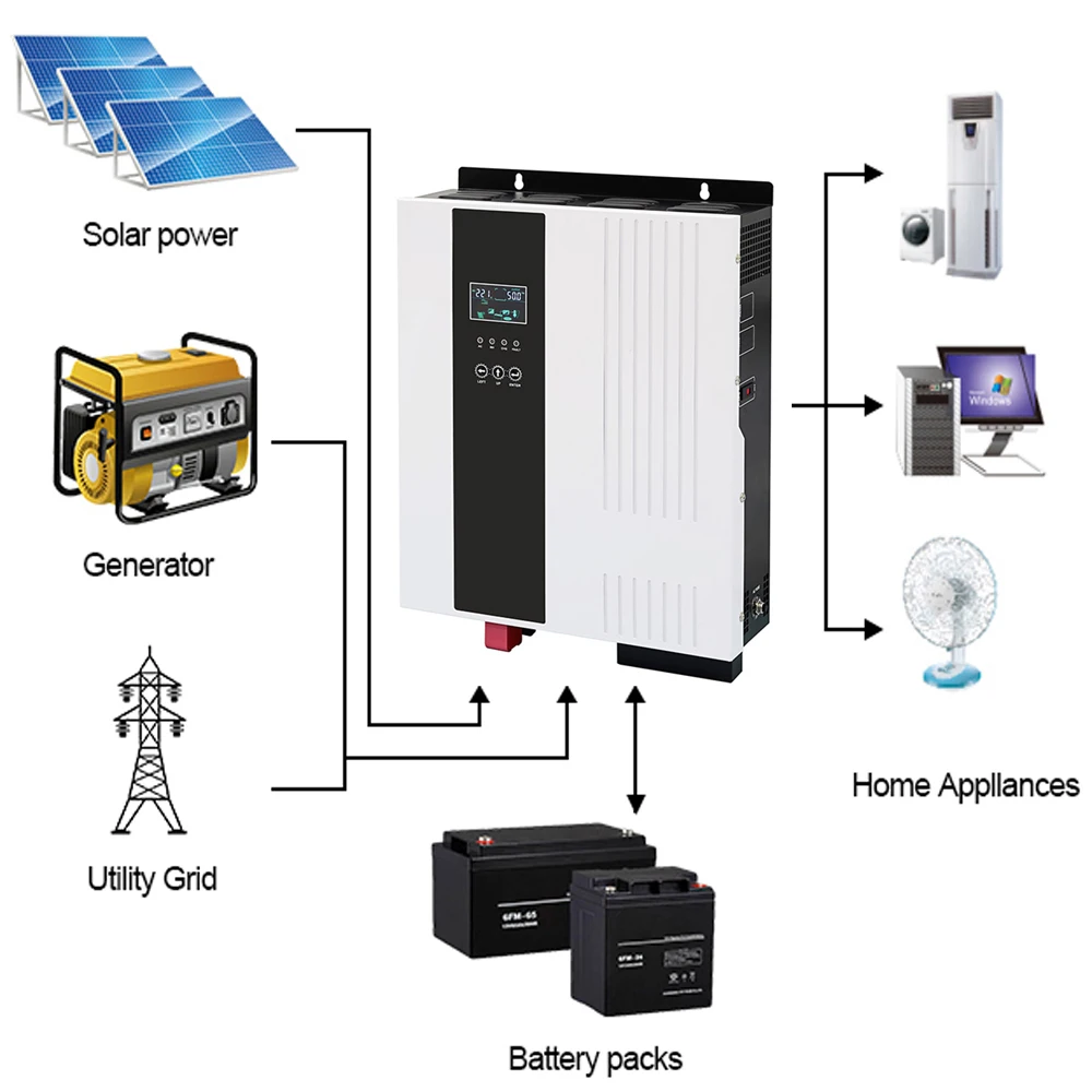 5500W солнечный инвертор 48V100A со слежением за максимальной точкой мощности, солнечный гибридный инвертор 5.5KW 220V солнечные фотоэлектрические сети Гибридный по ограничению на использование опасных материалов в производстве электрического и электронного оборудования инвертор волны синуса