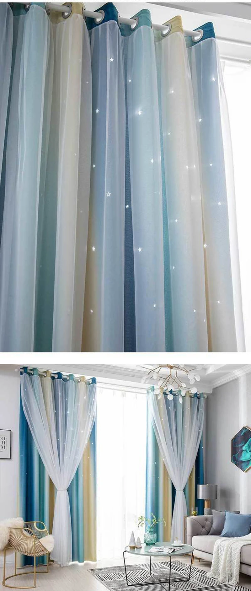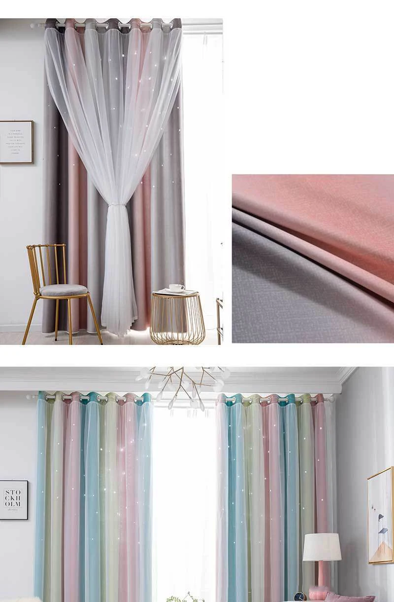 🦄✨[Уникальный дизайн]: Шторы выполнены из 2 слоев, с вырезами в виде звезд; Внутренний слой и внешний слой из тюля с кружевом. Мы используем высокотехнологичные полые технологии для резки краев и углов, оставляя форму звезды неповрежденной и четкой. Когда солнце светит, звезды излучают светильник через экран, образуя звездное небо мечты.