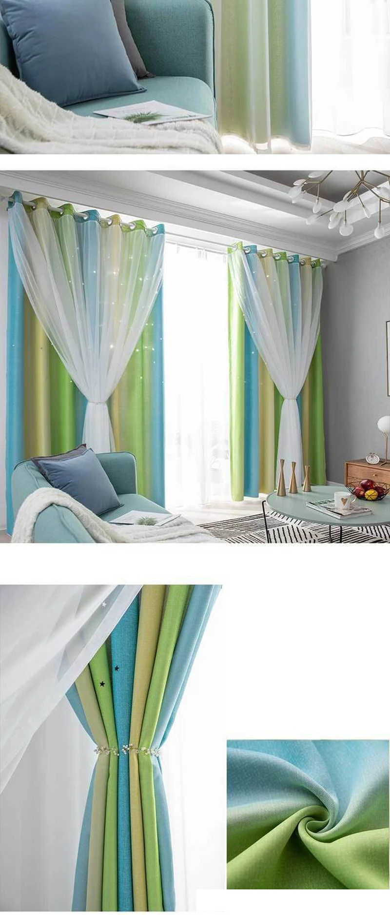 🦄✨[Посылка]: 1 шт., включает в себя 1 шт. прозрачный слой, прикрепленный к затемненной шторной панели, бонус 1 tieback. Прокладки (внутренний диаметр 3-4 см).