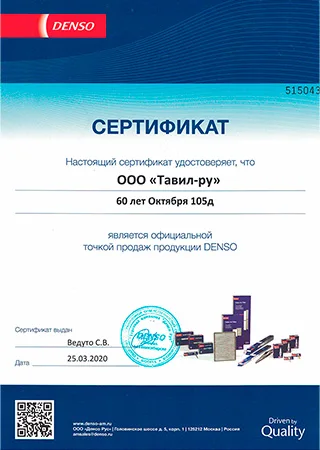 Магазин Тавил.ру является официальной, сертифицированной точкой продаж продукции компании DENSO.