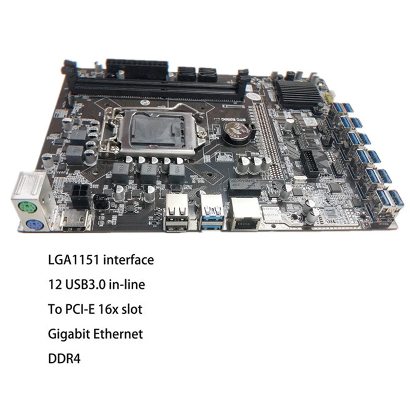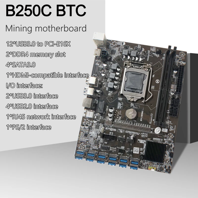 B250C BTC Mining материнская плата 12 USB3.0 слот для видеокарты LGA 1151 DDR4 DIMM RAM с 6 до 8 Pin кабель питания + линия переключения