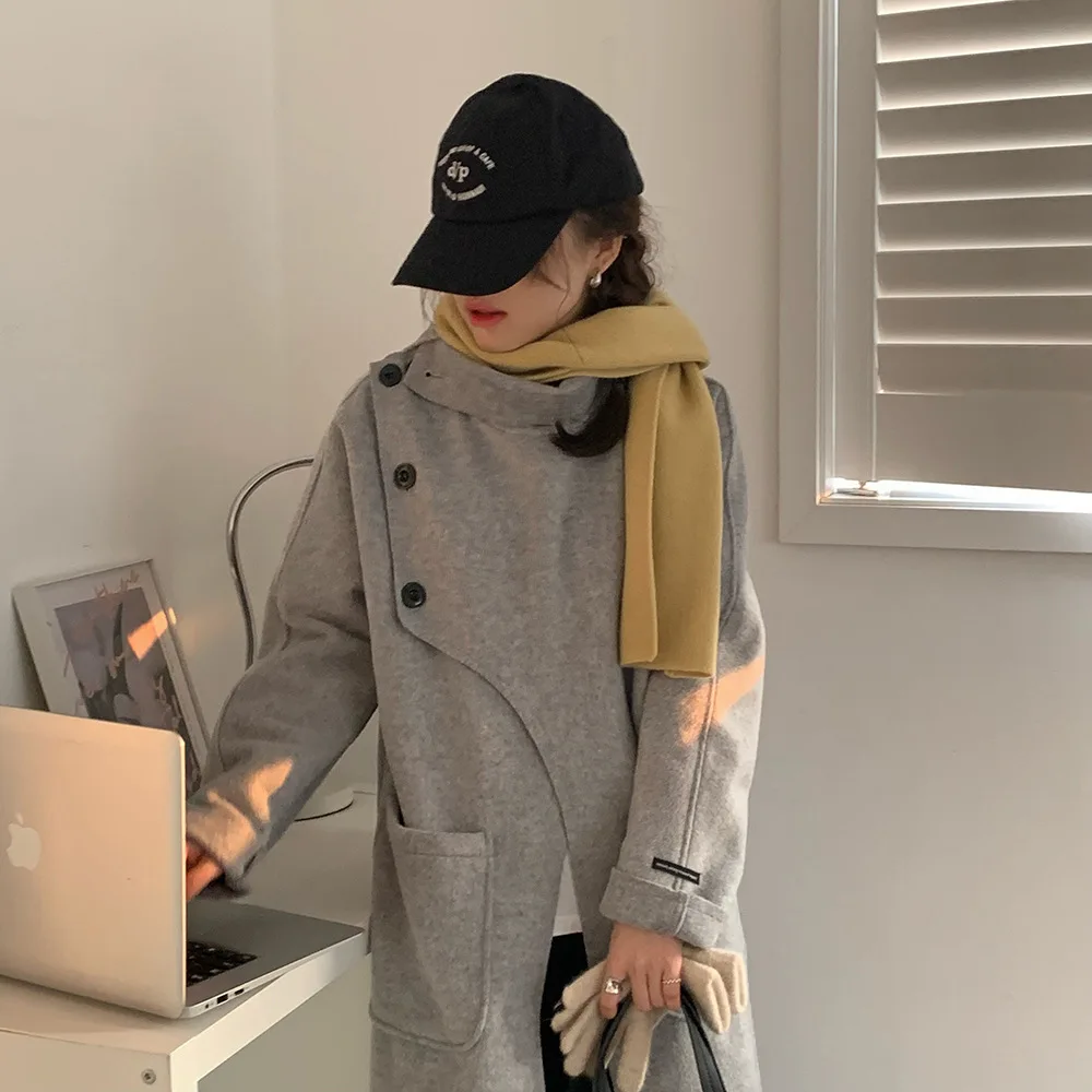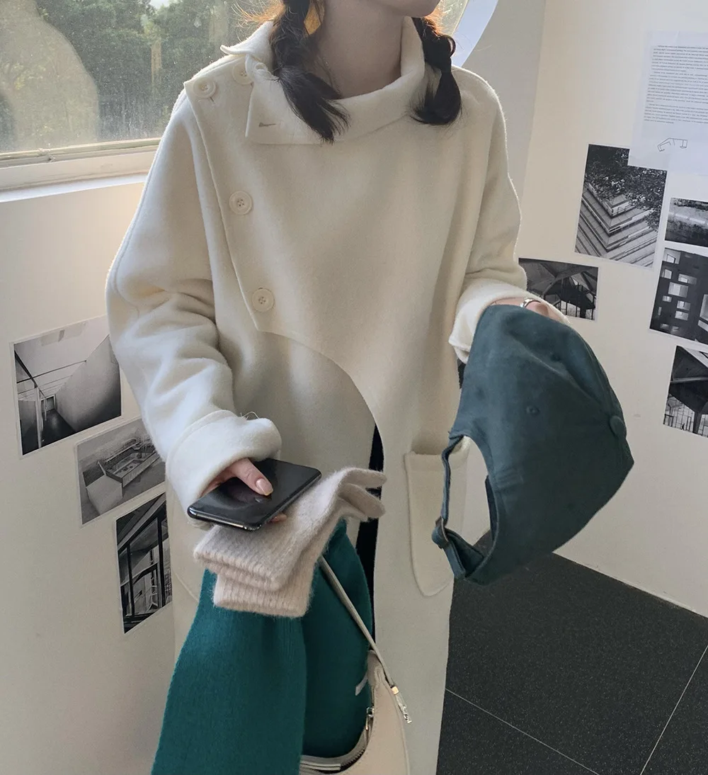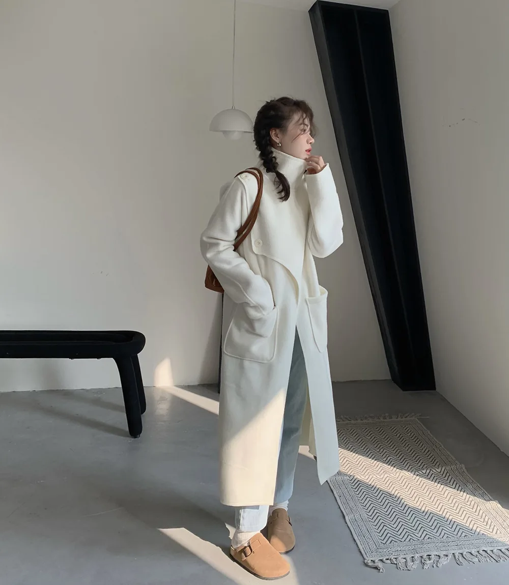 Женская одежда UMI MAO с высоким разрезом и воротником-стойкой двустороннее