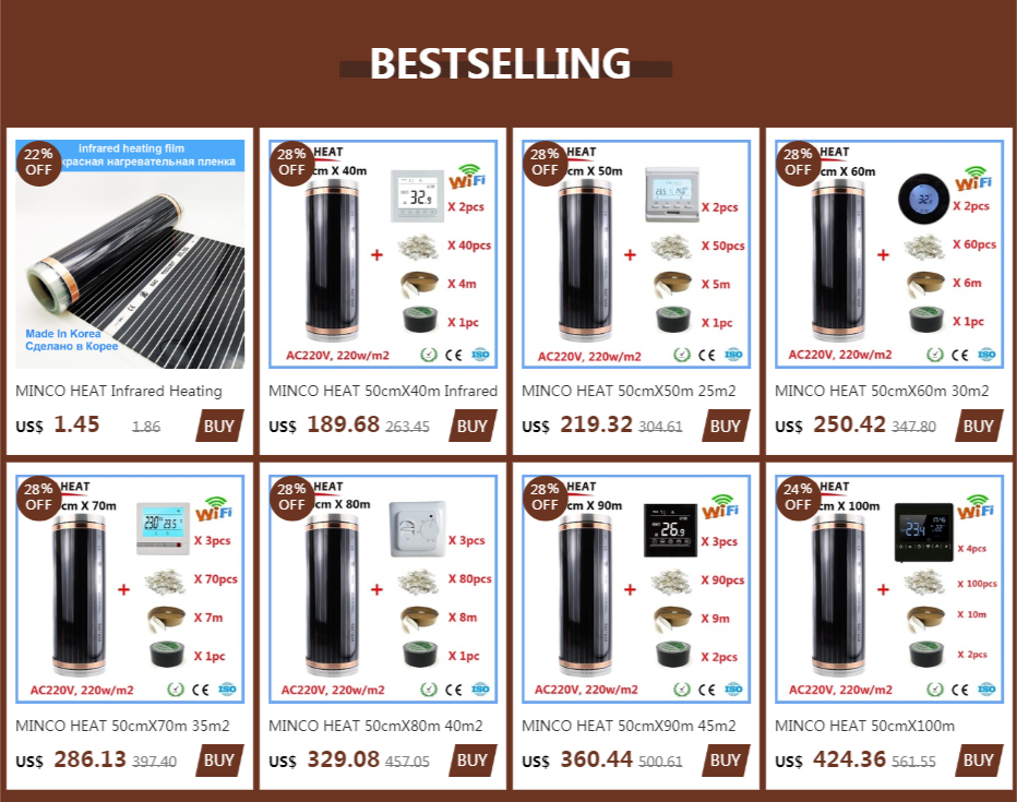 MINCO тепловая инфракрасная нагревательная пленка 220 В электрическая система теплого пола 50 см ширина 220 Вт/м2