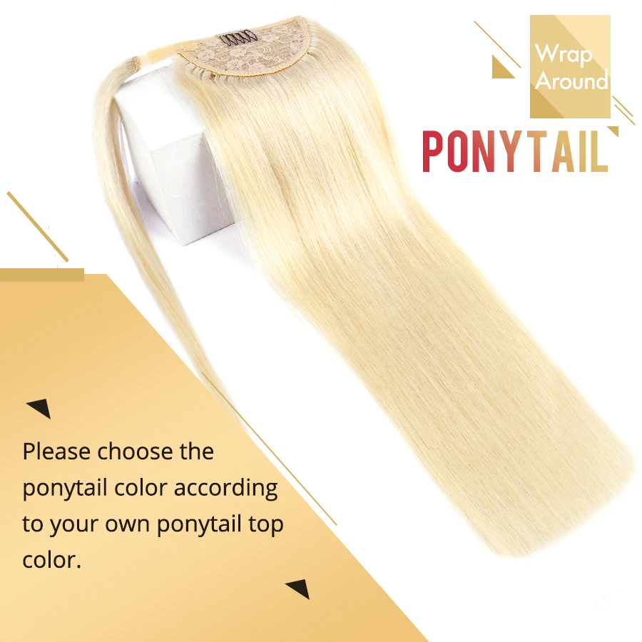 Neitsi Long Straight Wrap Around Ponytail Clip in Human Hair Extension 12-24 Inch Blonde Pony Tail Hairpieces for Women