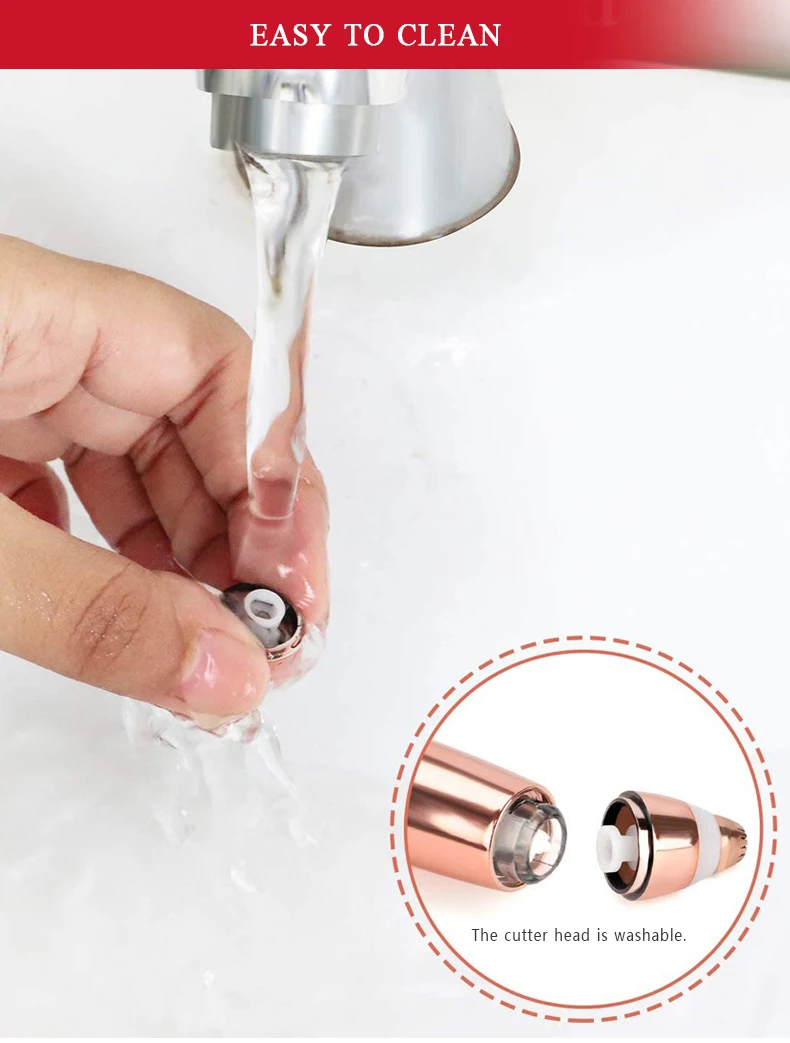 2. Нажмите кнопку и перемещайте триммер на кожу, где вы хотите удалить волосы, голова будет вращаться и аккуратно обрезать волосы.