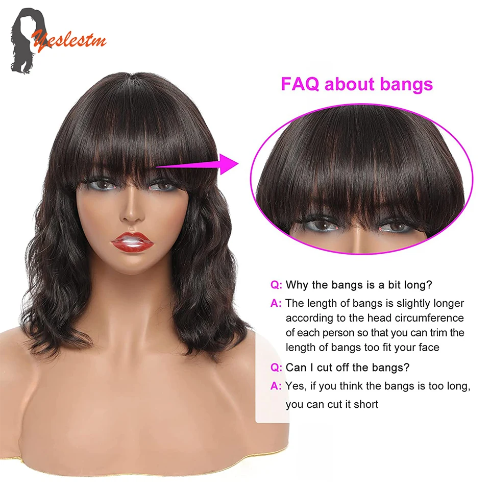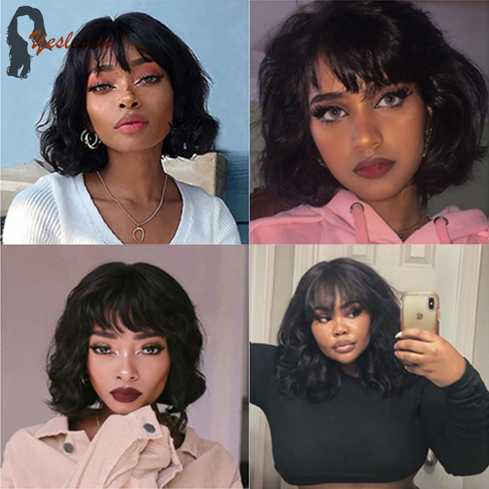 Yeslestm Boby Волна Боб человеческие волосы парики с челкой короткие бразильские человеческие волосы боб парики для женщин без шнурка полная машина сделал парики