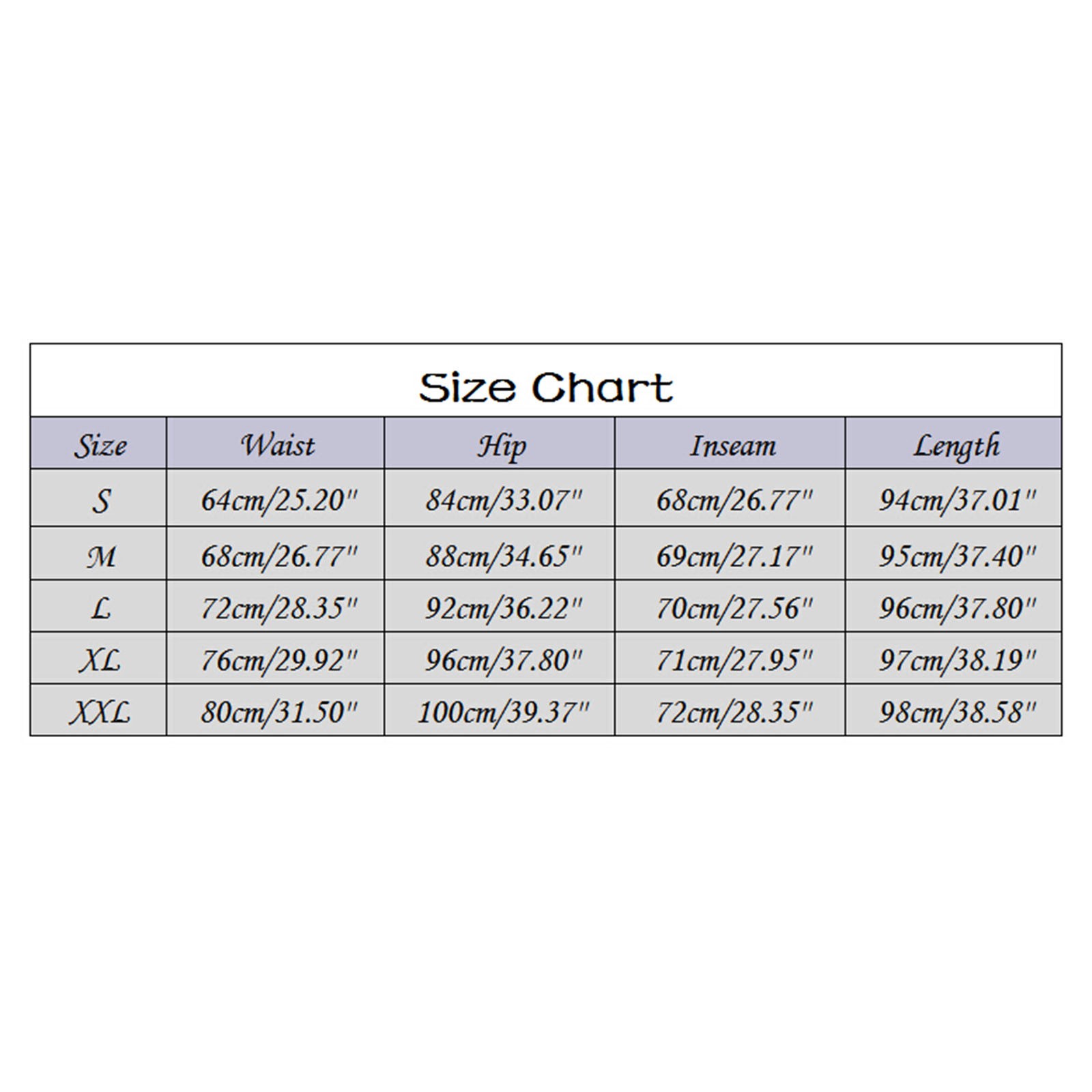 | Размеры | Талия | Бедра | Внутренний шов | Длина |
