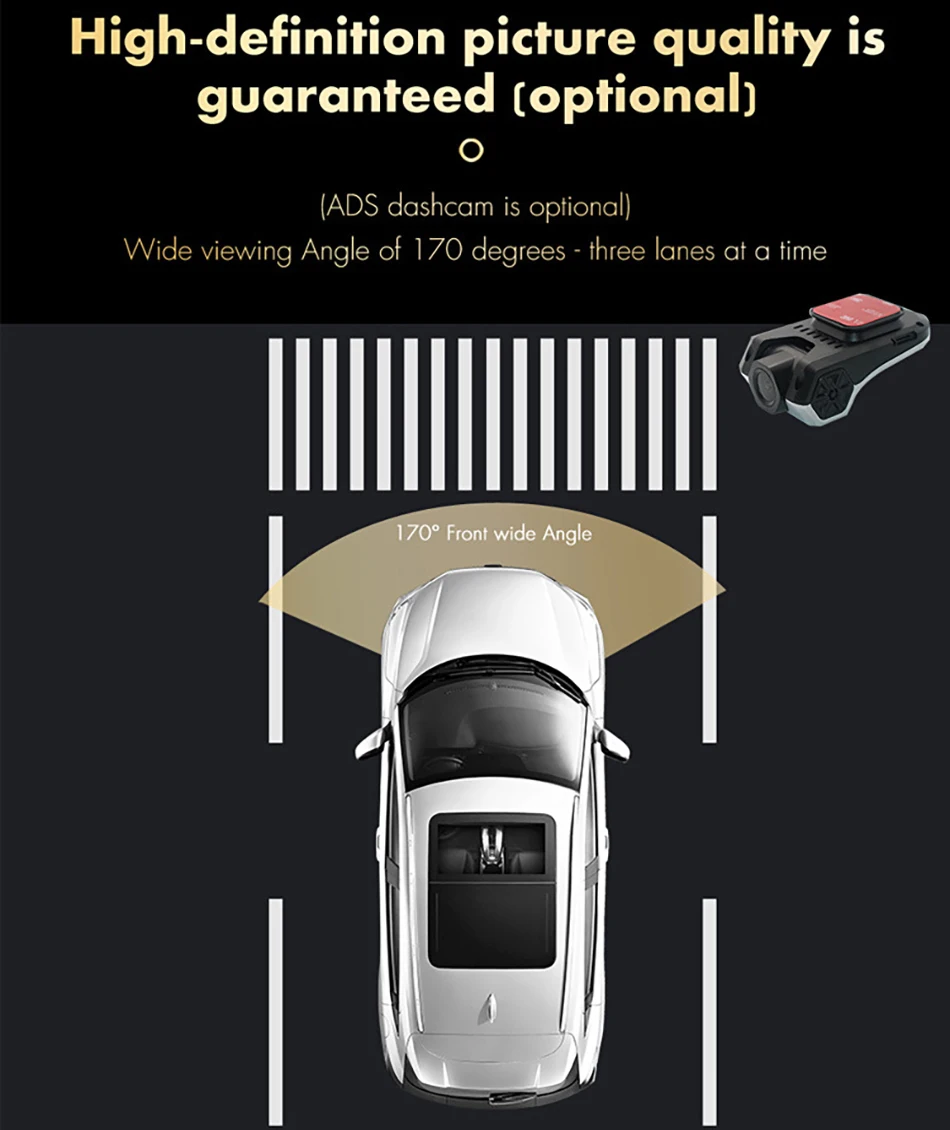 Видеорегистратор + ADAS вход готов Сделать его простым для подключения Fongent DVR к устройству. После установки, эта функция может запечатлеть события, которые происходят во время вождения, обеспечивая функции безопасности, такие как съемка столкновения.
