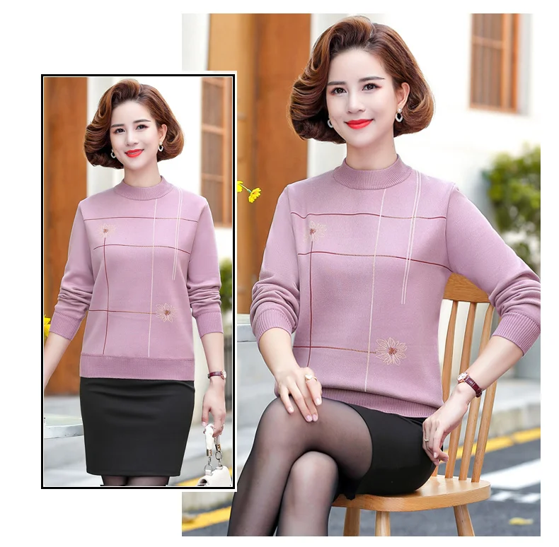 Женский джемпер с длинным рукавом зеленый свитер круглым вырезом и цветочной