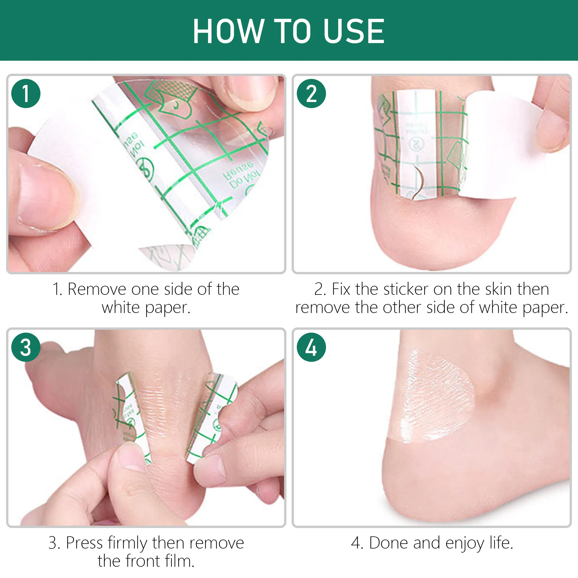 Защита-блистерная повязка может предотвратить трение обуви, предотвратить давление на пятку или стопу, предотвратить мозоли, волдыри и раздражения и уменьшить боль, вызванную непрерывным трением новой обуви. Его можно использовать на каблуках, лодыжках, пальцах и других областях, которые легко тереть.