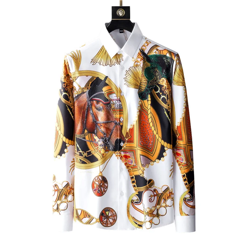 Рубашка мужская с длинным рукавом модная брендовая блуза принтом смайлика