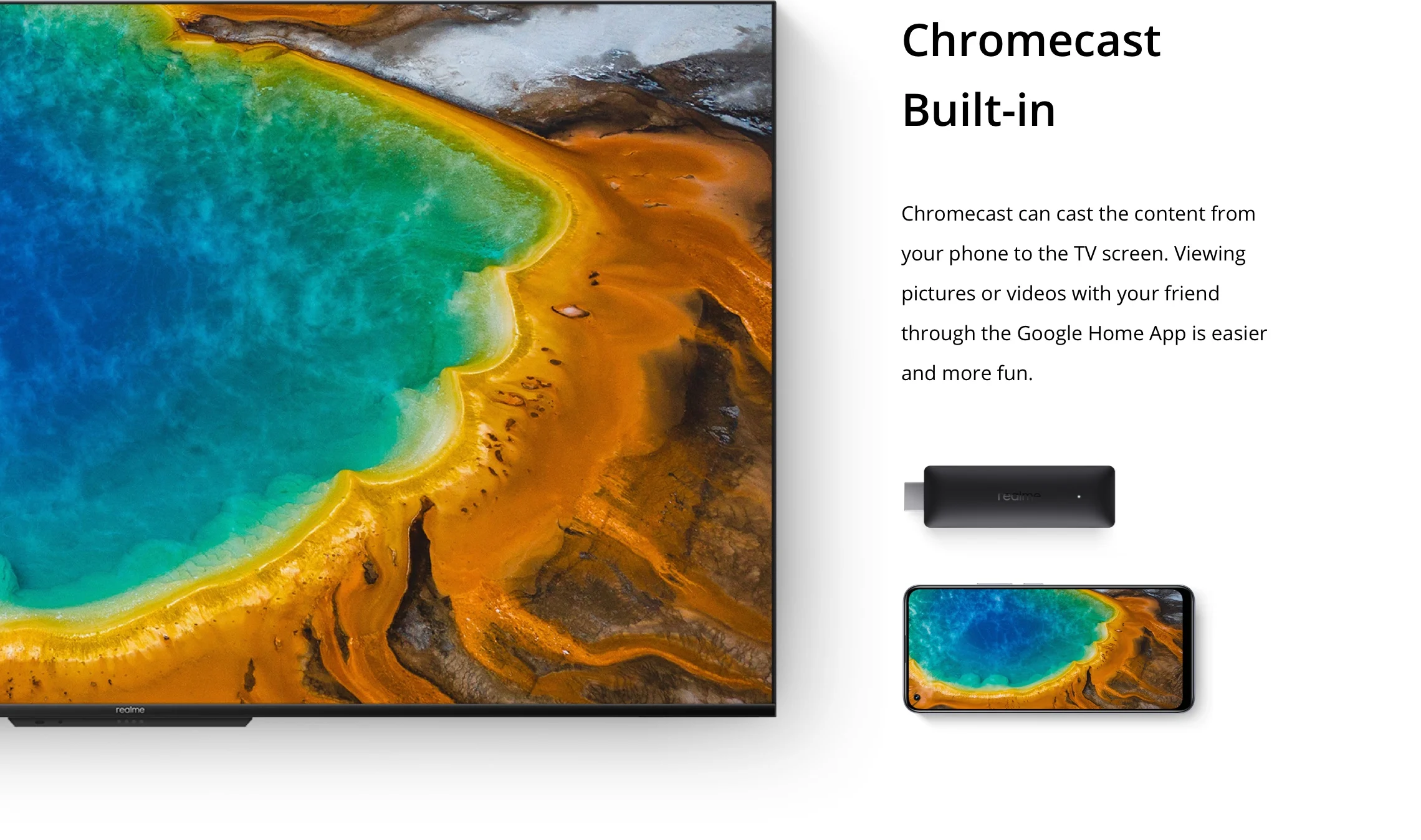 Realme Smart TV Stick встроен в интеллектуальный Google Assistant. Вы можете задать вопросы, установить напоминания, проверить прогноз погоды и действительно взаимодействовать с вашим умным телевизором.