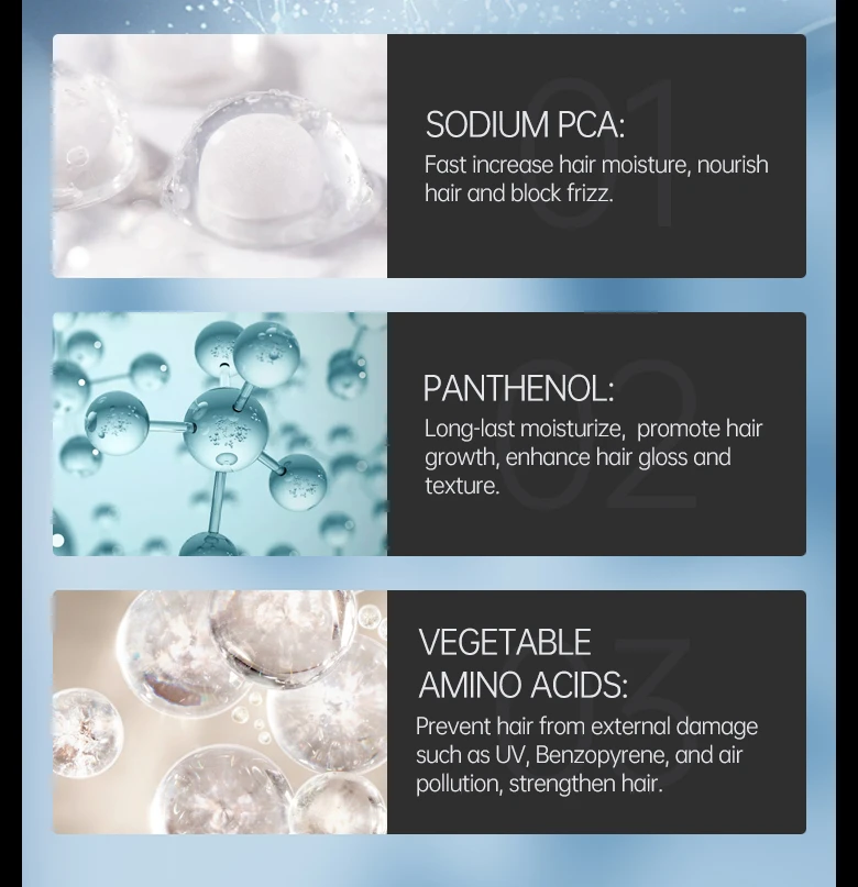 2. ПХА натрия: быстрое увеличение влажности волос, питает волосы и блокирует завивки.