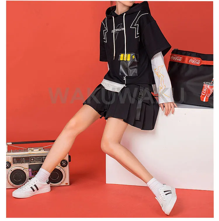 Этот товар включает только верхние части (белая футболка и черное пальто), брюки в комплект не входят