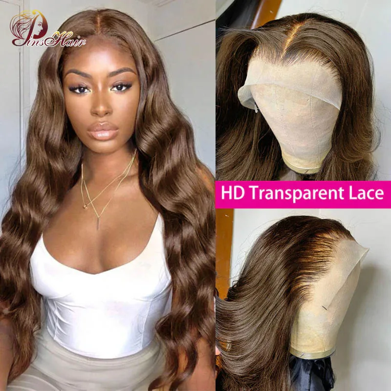 Перуанские волнистые человеческие волосы, парики из коричневого кружева спереди, прозрачные цветные кружевные передние парики для женщин, коричневый парик