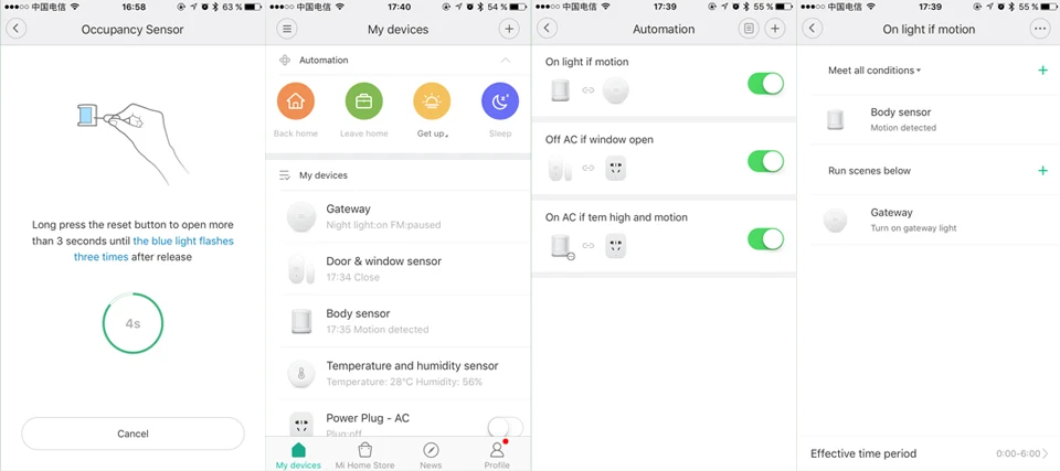 Многофункциональный шлюз Он может изменить на 16 миллионов цветов и изменить освещение Основная база-Беспроводная со встроенным динамиком и светодиодный Датчик окон/дверей Он контролирует состояние окон/дверей, а именно, когда они открываются или закрываются. Датчик движения человеческого тела Датчики изменения температуры контролирует движение людей или домашних животных в помещении Беспроводной переключатель Предназначен для дистанционного управления смарт-устройством Датчик температуры и влажности Он может в режиме реального времени обнаруживать температуру и влажность. Автоматическая сигнализация, если температура и влажность являются ненормальными. Вы можете легко просматривать изменения температуры и влажности по данным в соответствии со всеми историческими записями. Температура измерения Точность: ± 0,3 °C Точность измерения влажности: ± 3% Умная розетка WiFi (версия ZigBee) Обнаружение мощности, электричество, мобильный телефон с дистанционным управлением, защита от перегрузки, переключатель синхронизации, подходит для телефона, зарядного устройства, чайника, вентилятора, телевизора, лампы, плиты и т. Д. Способен поддерживать несколько действий, которые позволят вам контролировать различные продукты smart home от xiaomiЭтот продукт должен использоваться с шлюзом Bluetooth или сетчатым шлюзом Bluetooth.