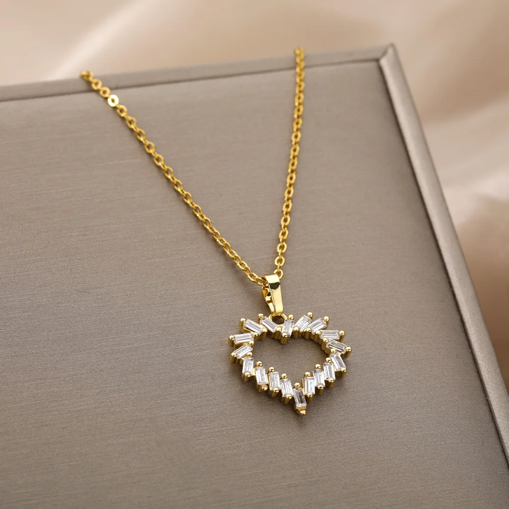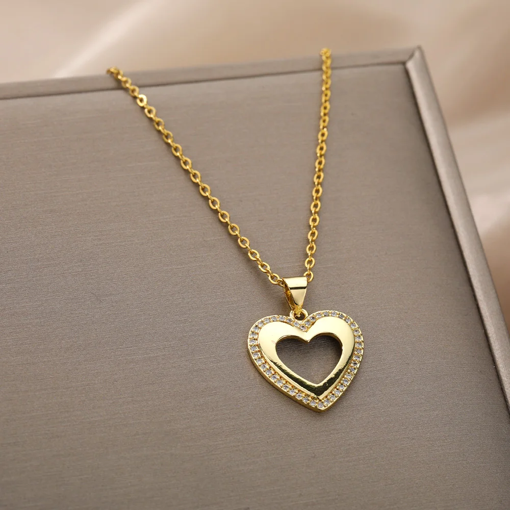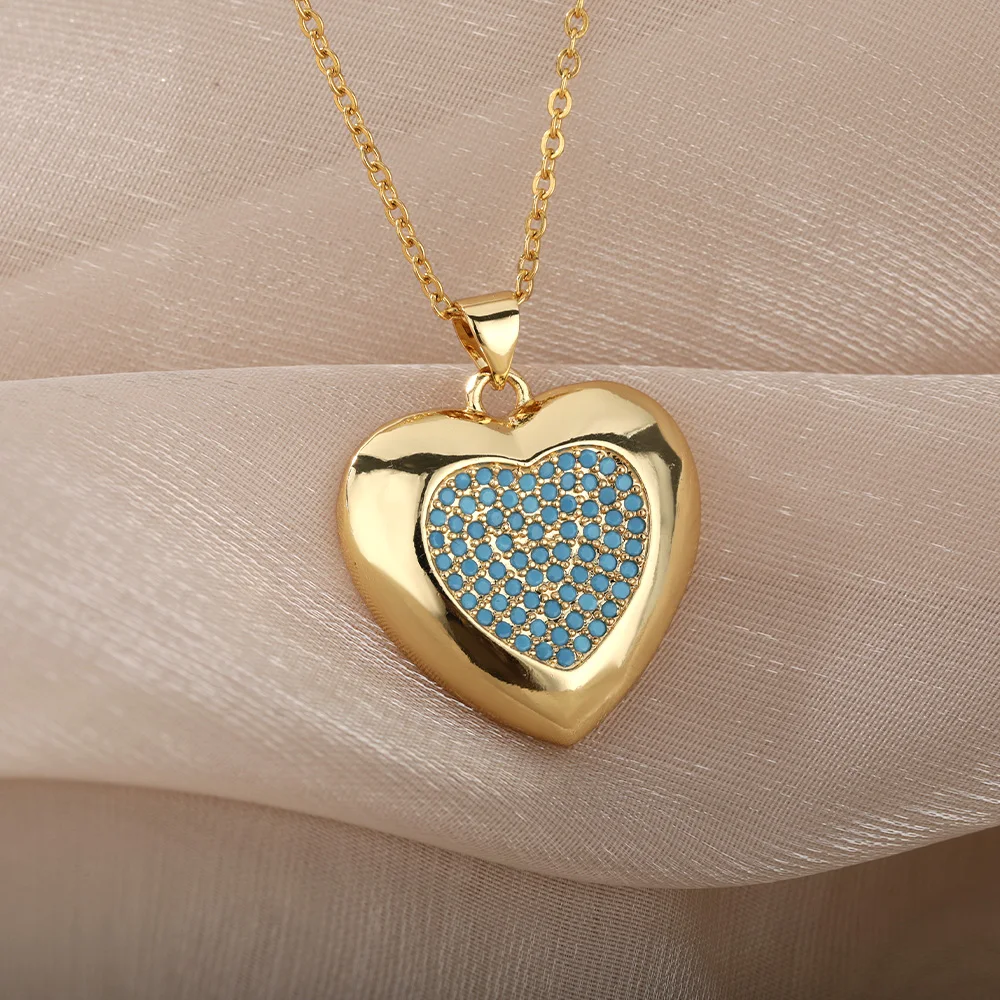 Циркониевое ожерелье в форме сердца для женщин, нержавеющая сталь, Золотое сердце, злой глаз, подвеска, ожерелье, чокер, винтажное ювелирное изделие, подарок, Bijoux Femme