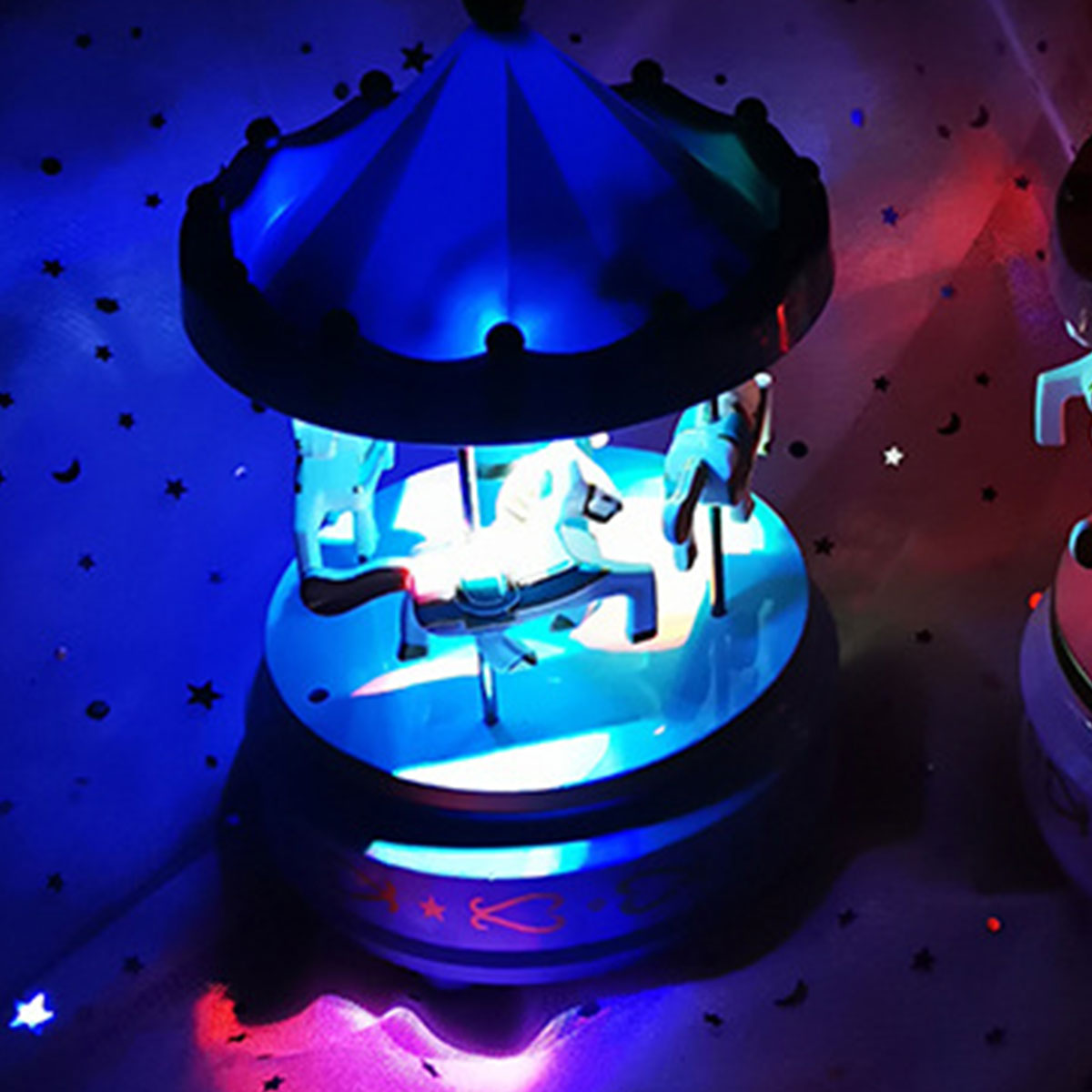 【 Вращение на 360 ° и светильник:С металлическим часовым механизмом, вам просто нужно скрутить конец и отпустить его. Музыкальная шкатулка carousel horse начнет вращаться, с фантастическим эффектом, создающим дружелюбный, романтичный и мечтательный светильник.
