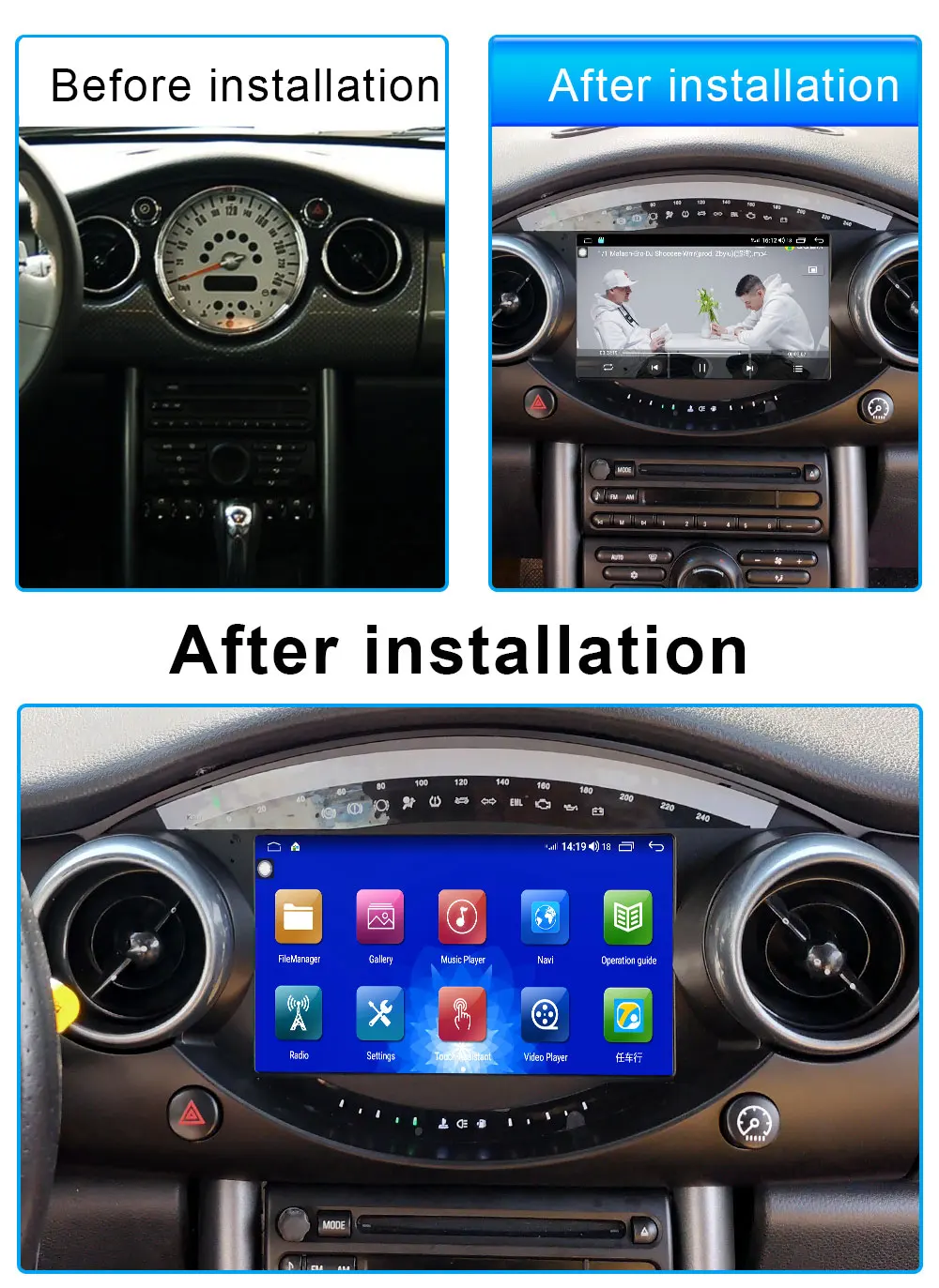 Поддержка Android автомобильное радио дляBMW MINIМодуль 4G: в любое время, в любом месте и делитесь пейзажами с друзьями.
