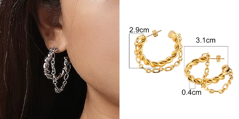 Brand NameNoneOriginMainland ChinaMaterialMetalGenderWomenStyleTRENDYItem TypeEarringsMetals TypeStainless SteelShape\patternRoundFine or FashionFashionEarring TypeHoop EarringsMeasurement unitpiece/piecesEach pack1MaterialStainless SteelRound EarringChain Earring