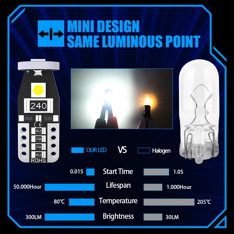 Тип разъема: T10/194/W5W/194/168/2825
