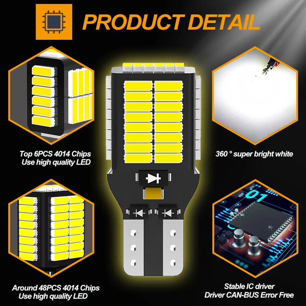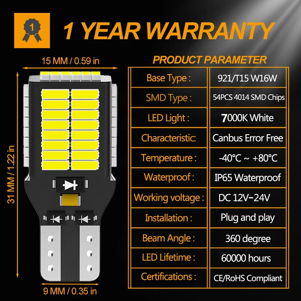 2 шт. W16W светодиодный T15 Светодиодный лампочки Canbus 920 921 ошибок супер яркий 4014 54SMD бусинковые лампы автомобильная резервная копия светильник лампы 6000K - 7000K белый 12V 24V