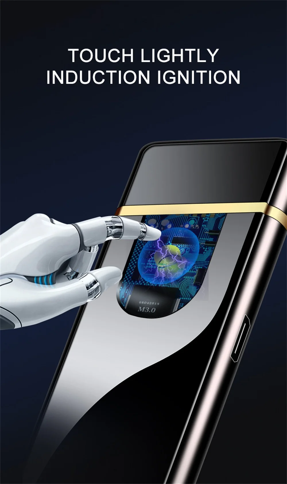 Ветрозащитная электрическая металлическая зажигалка двойная дуга плазменная перезаряжаемая USB Зажигалка сенсорная Индукционная Зажигалка для курения мужские гаджеты