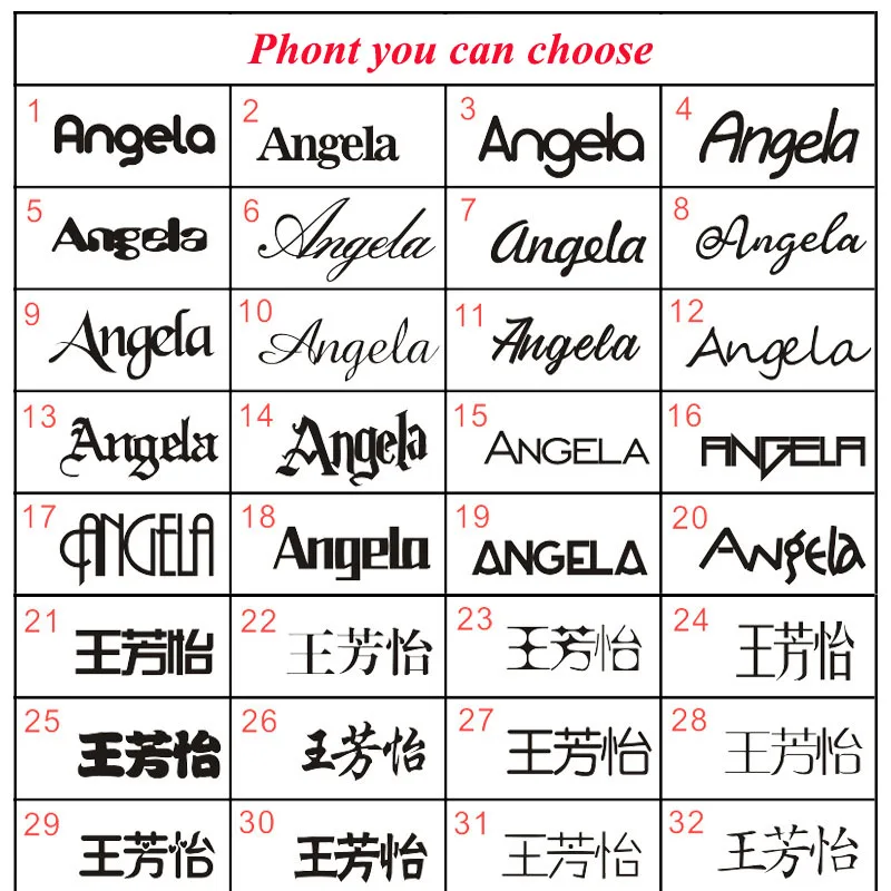 Размер: зависит от количества букв