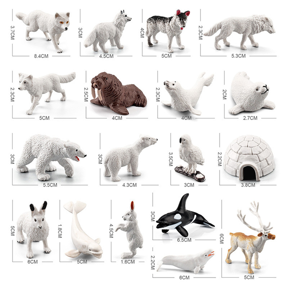 1. Набор включает в себя: 18 моделей животных Arctic circle, включая Белого Волка, белую сову, белую Лису, arctic rabbit, arctic fox, husky, igloo * 1 Arctic circle animal dolls и т. д.