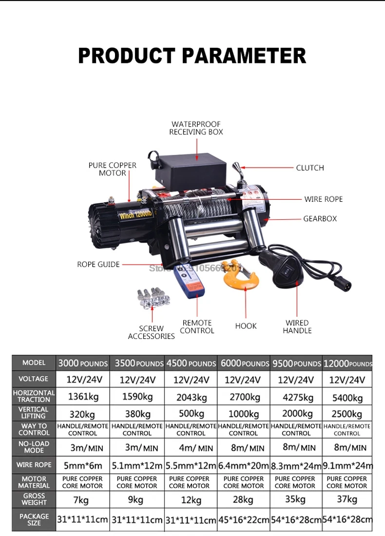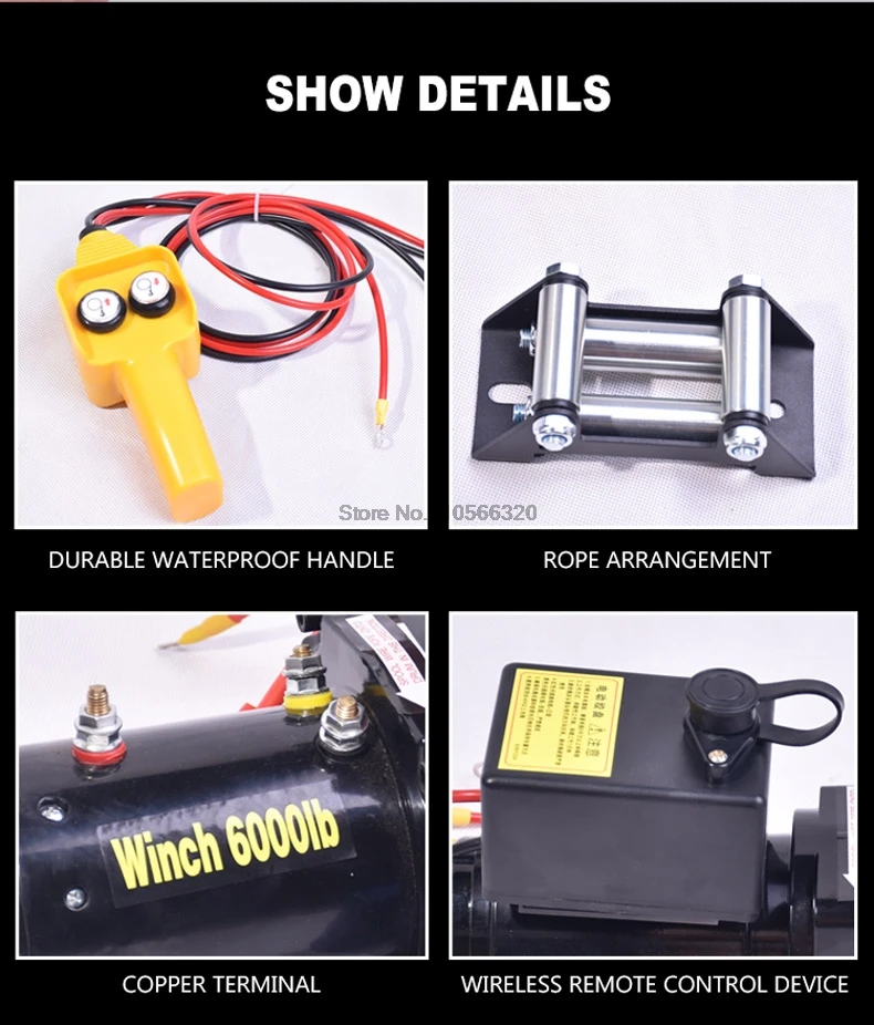12v электрическая лебедка-3000lb Dyneema синтетическая веревка-ATV внедорожная черная