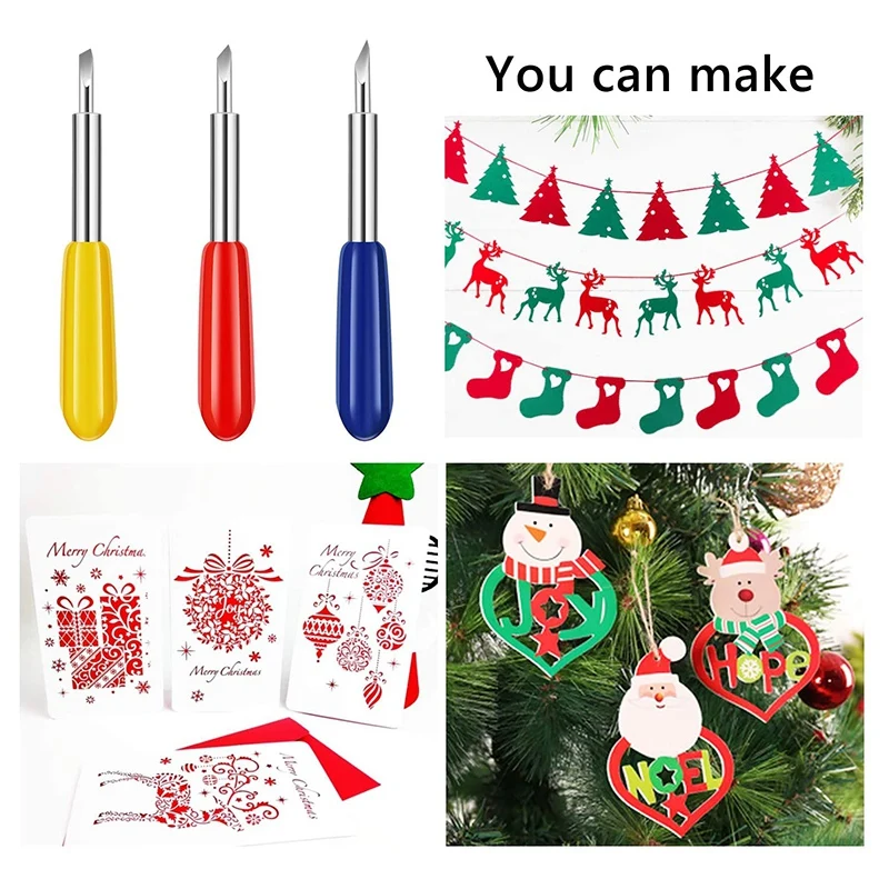 [Приложения] подходит для резки средней толщиной 0,25 мм, светильник среднего веса материалы, такие как бумага для упаковки, липкие фольги бумагу для принтера, древесно-стружечная плита, материал уплотнения, плотные карточки, виниловое лезвие, создающее карты, скрапбуки, персонализированные подарки, рождественские вечерние украшения стен.