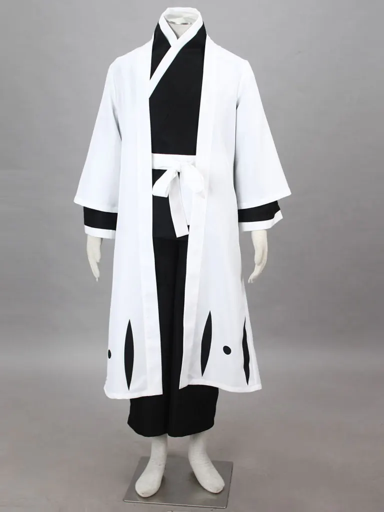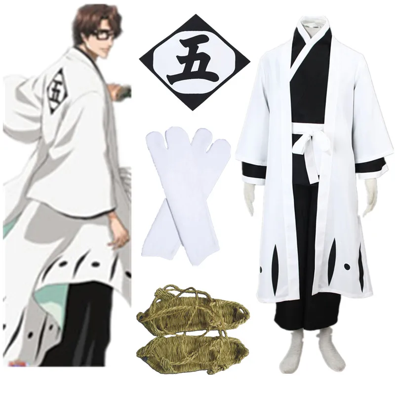 Мужской костюм из 6 предметов: халат, черное кимоно с белым краем, эластичные брюки, белый пояс, соломенные сандалии, носки с двумя носками