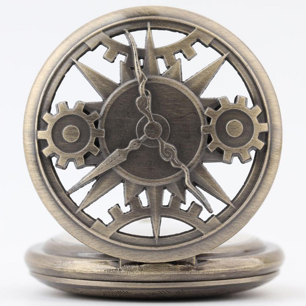 Винтажный Унисекс полые шестерни арабский номер кварцевые карманные часы кулон ожерелье