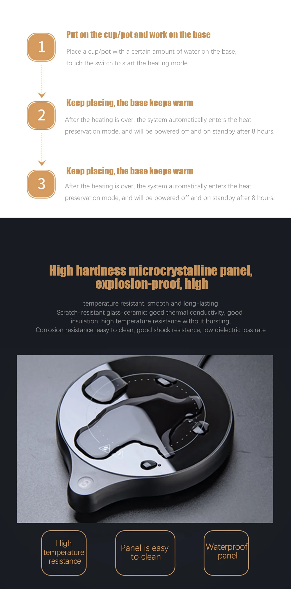 -Easy to clean the microcrystalline panel, the rounded base has no corners and it is easy to scrub.