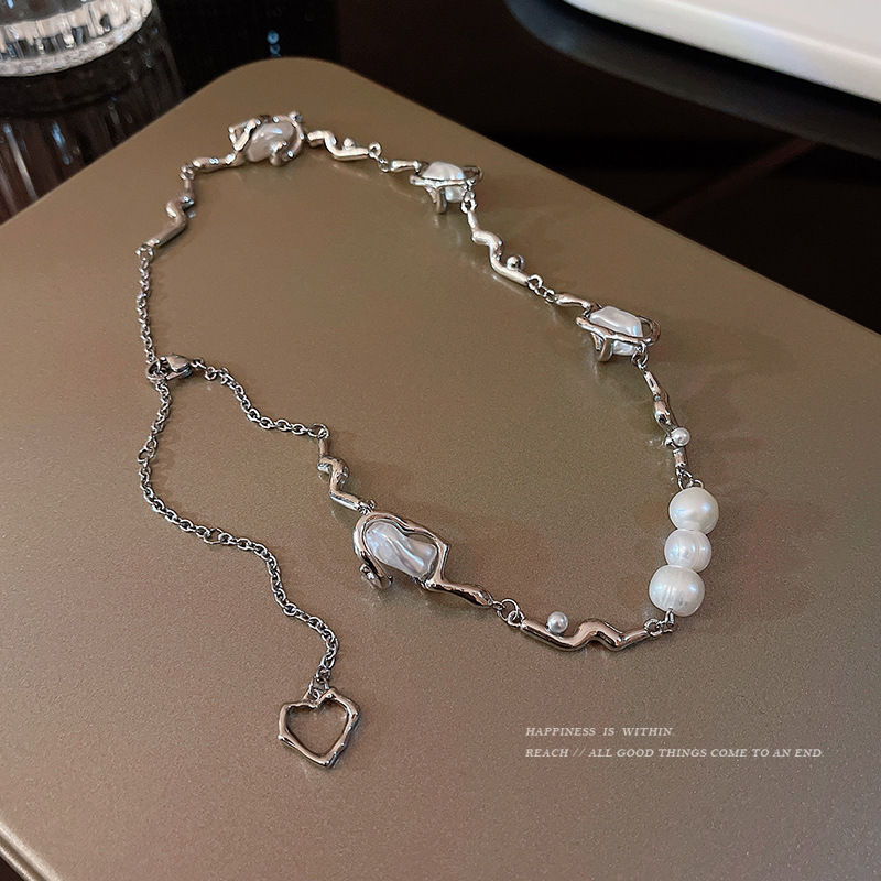 Новинка, жемчужное открытое ожерелье с кисточками и сердечками, неравномерное маленькое ювелирное изделие из нержавеющей стали с индивидуальным дизайном