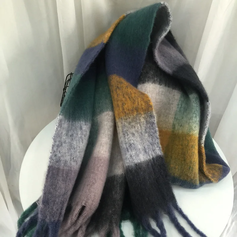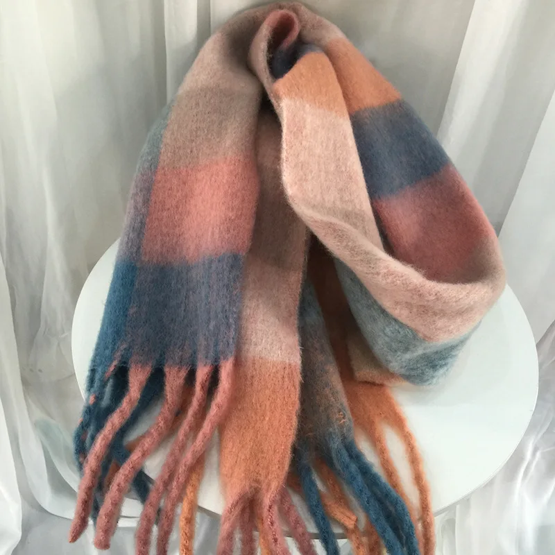 Зимний кашемировый шарф, женские толстые теплые шали, женские клетчатые шарфы, Модные кисточки из пашмины, одеяло, качественная шаль, новинка 2021