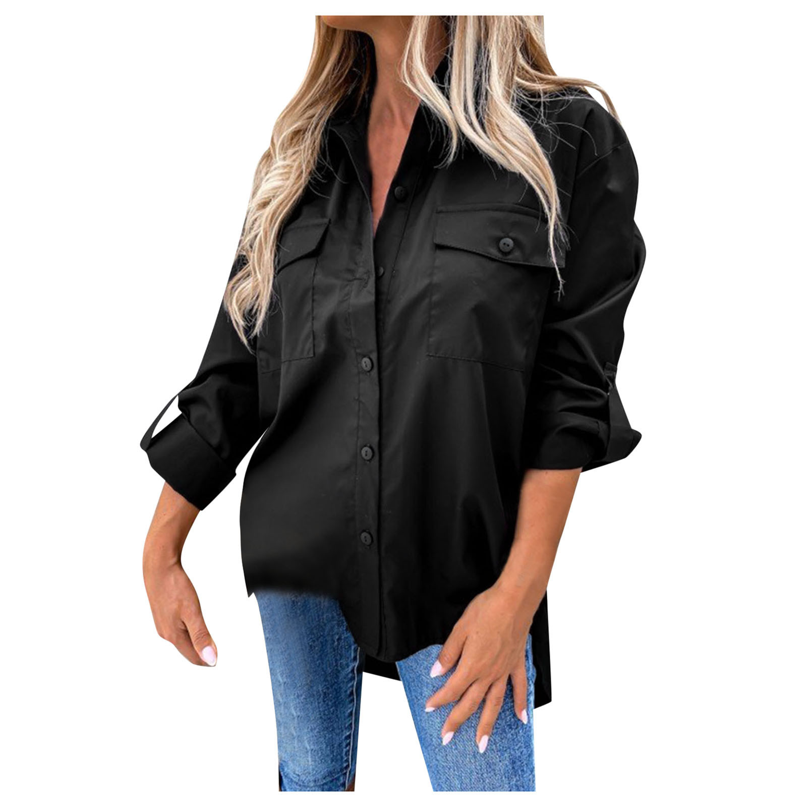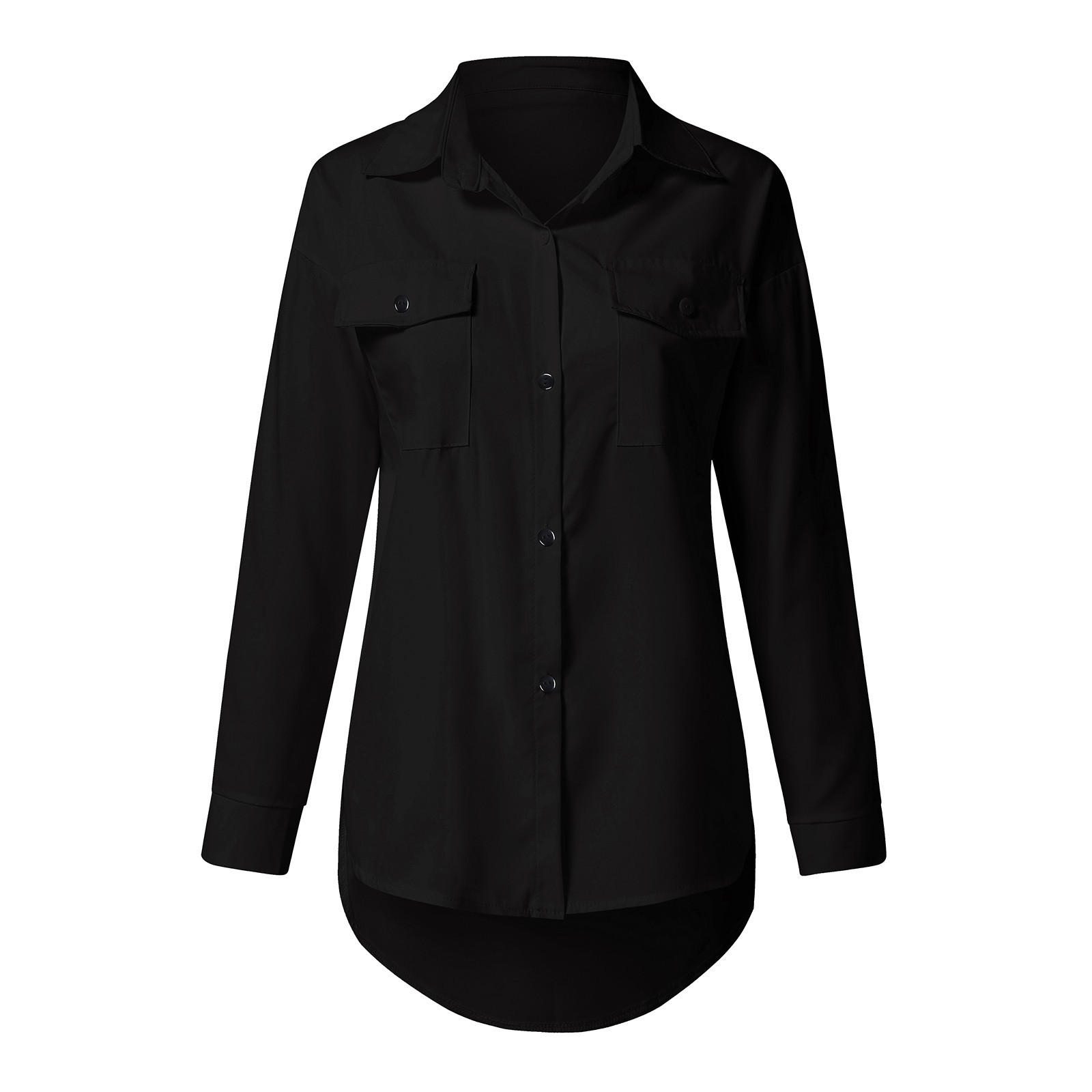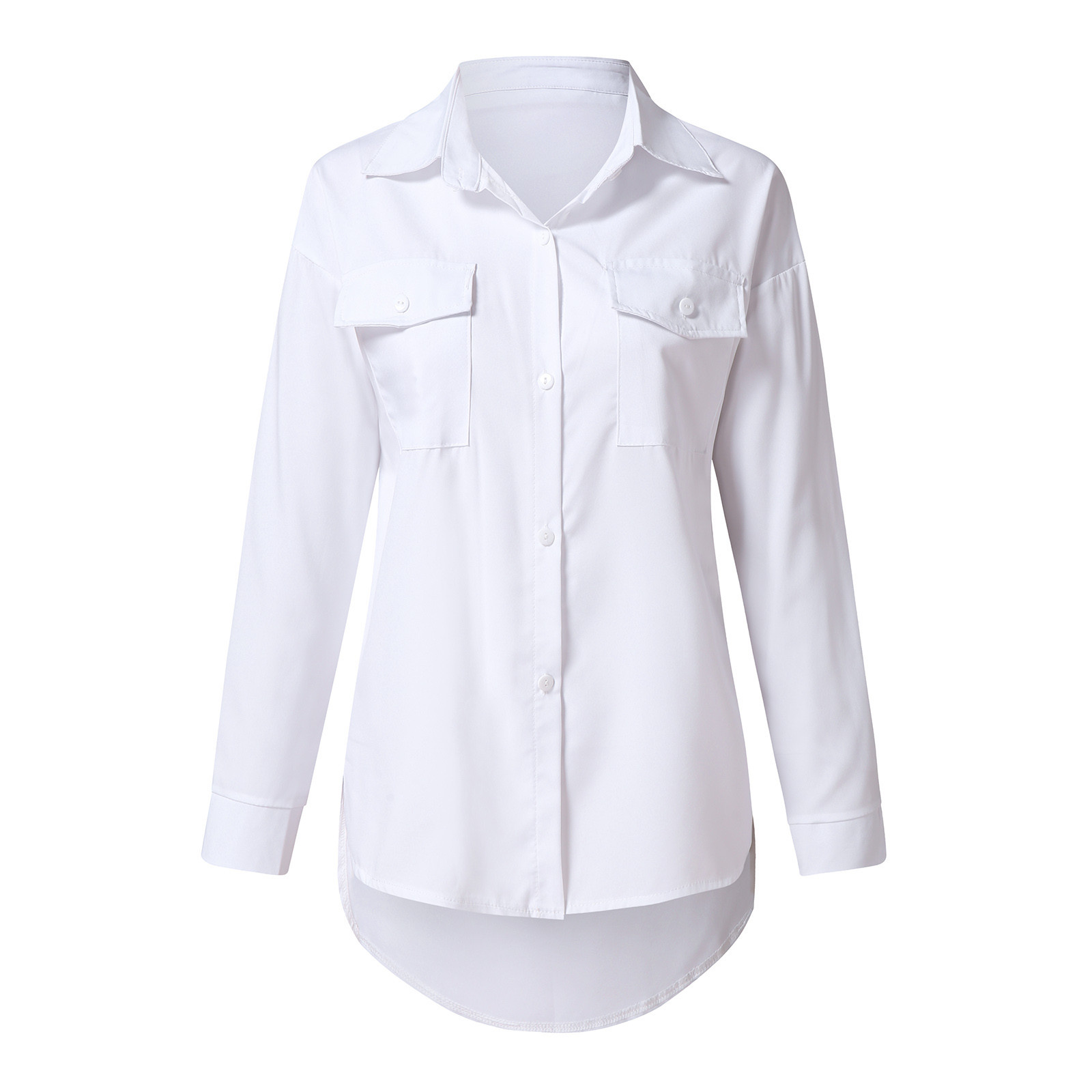 Женская Повседневная однотонная Асимметричная Свободная рубашка с длинным рукавом и отворотом