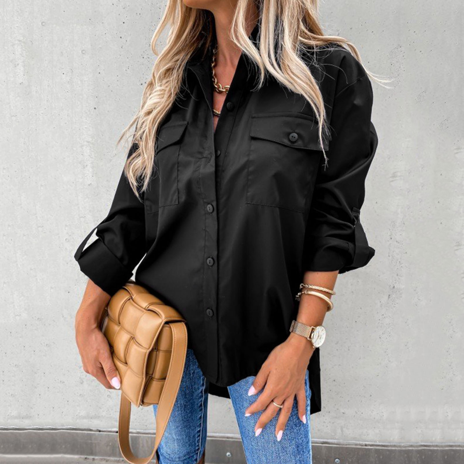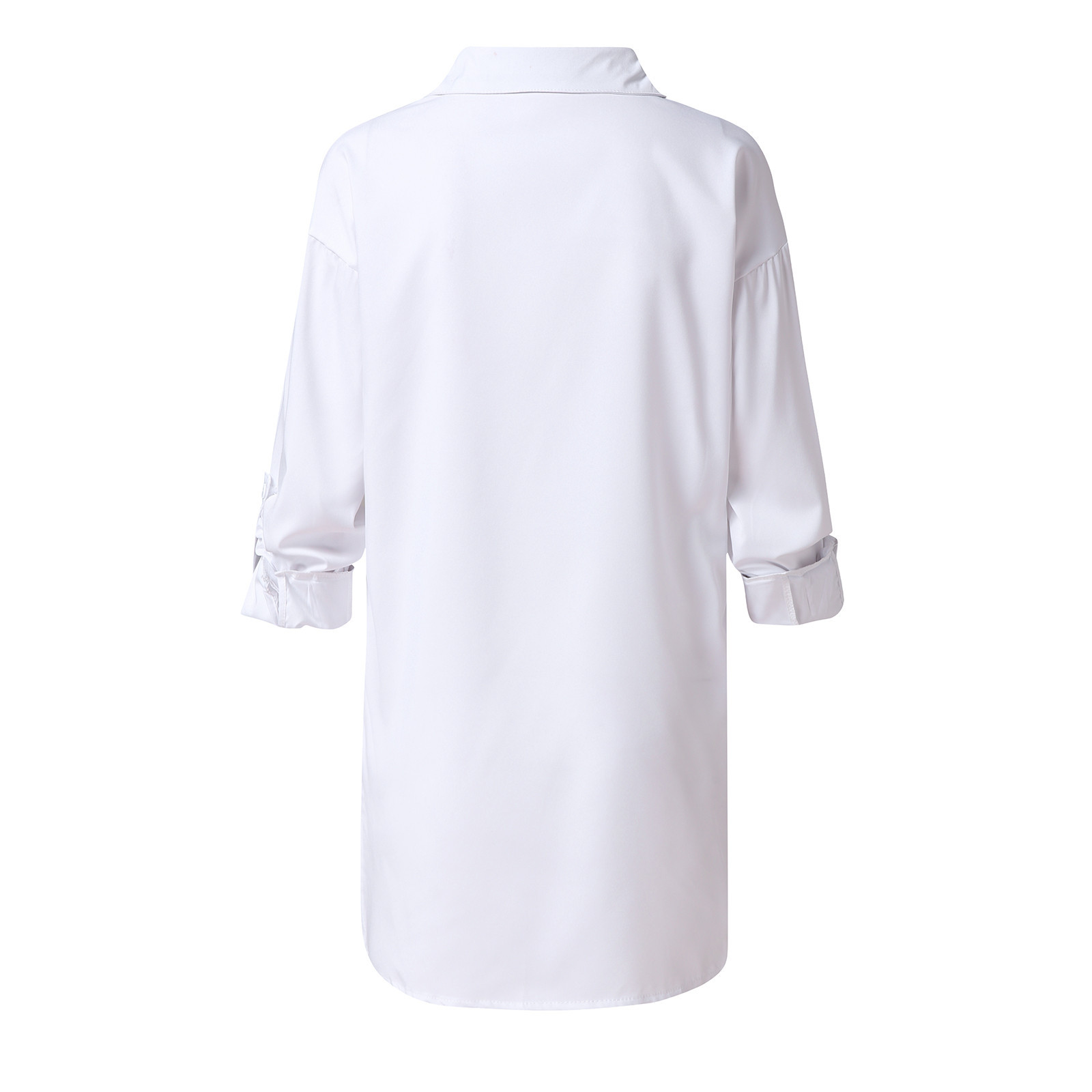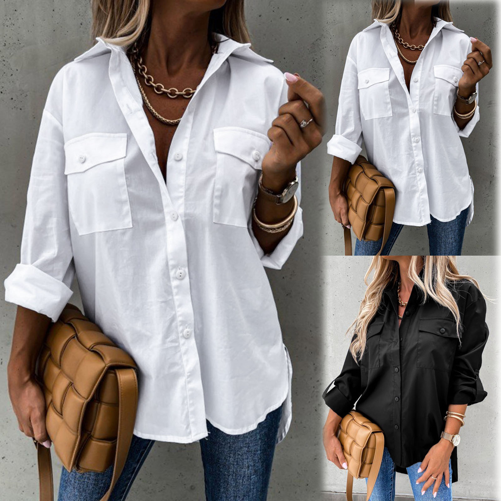 Женская Повседневная однотонная Асимметричная Свободная рубашка с длинным рукавом и отворотом