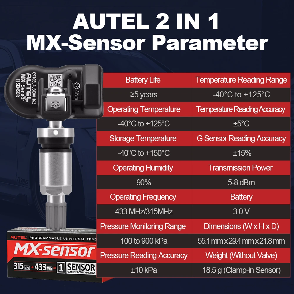 Autel MX-Sensor 2 в 1 (315 МГц + 433 МГц) Программируемый датчик уровня OE для системы контроля давления в шинах (TPMS) 100% Cloneable + подходит 98% основных транспортных средств/mx-сенсор 433 МГц/TPMS PAD датчик программиста