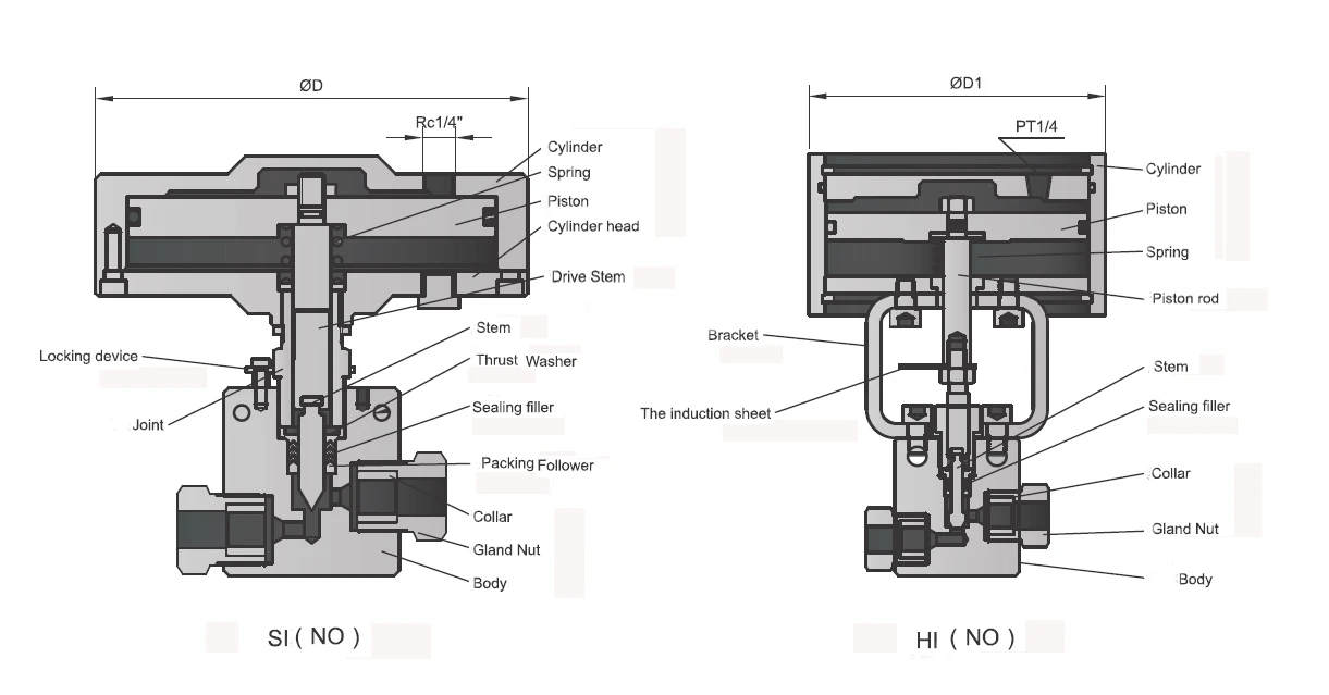 ★Привод из нержавеющей стали 316 для клапанов серии SI и привода из алюминиевого сплава для клапанов серии NO & NC.