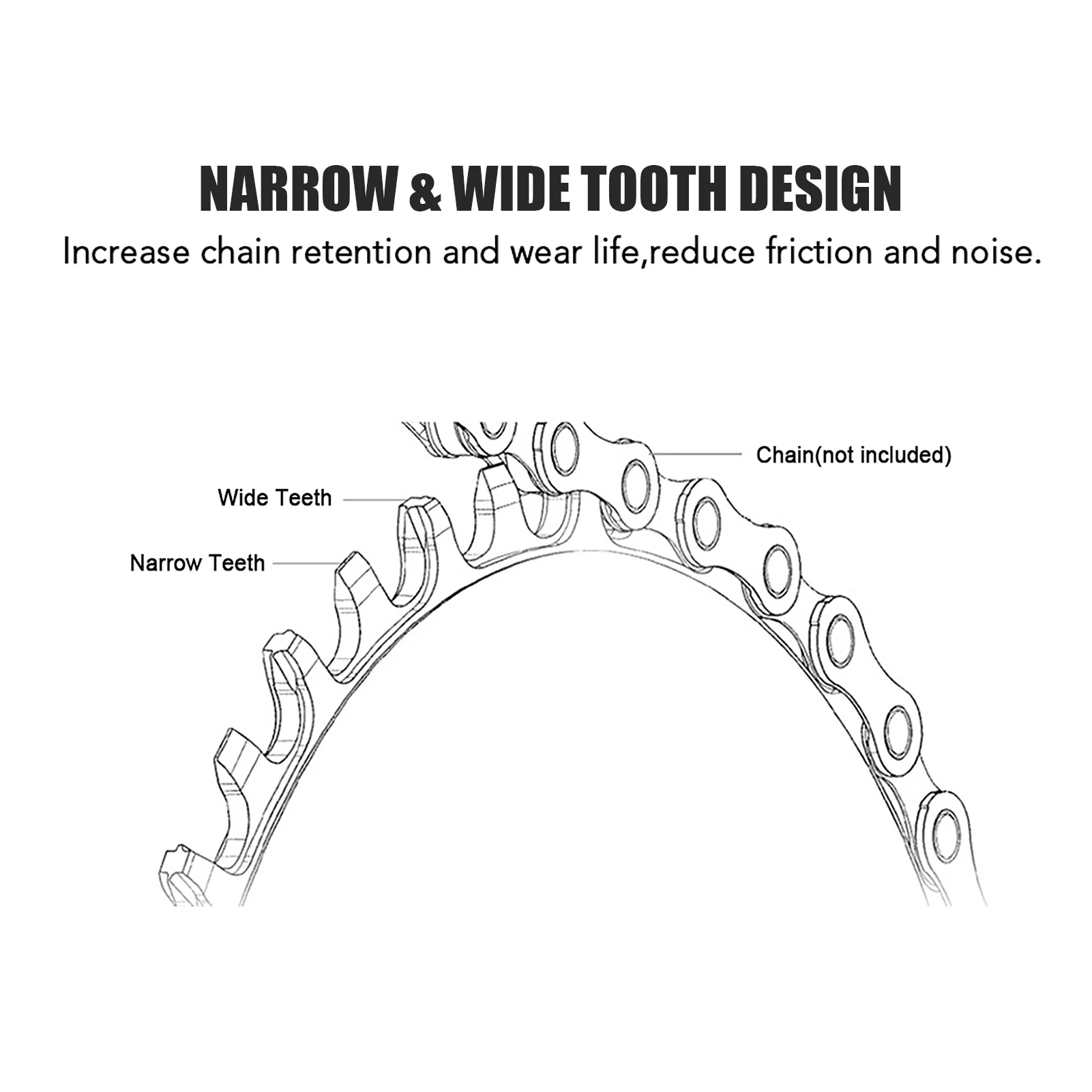 Узкие и широкие зубья увеличивают срок службы цепи, уменьшают трение и шум.