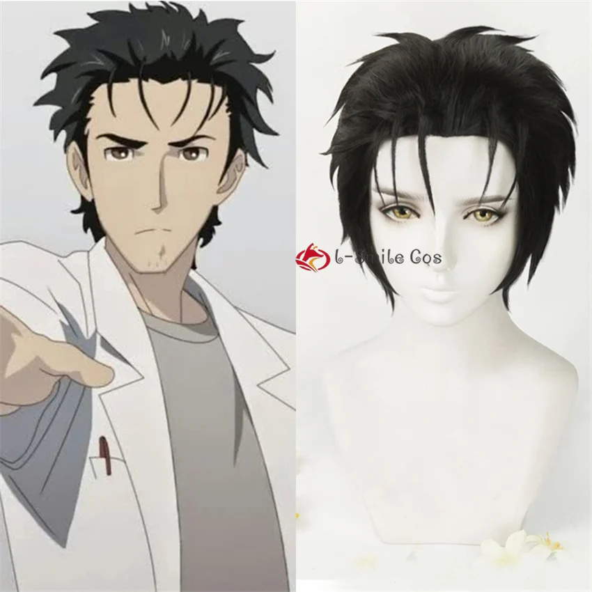 Steins Gate 0 Okabe Rintarou Косплей парики короткие черные стильные термостойкие синтетические волосы парик + парик